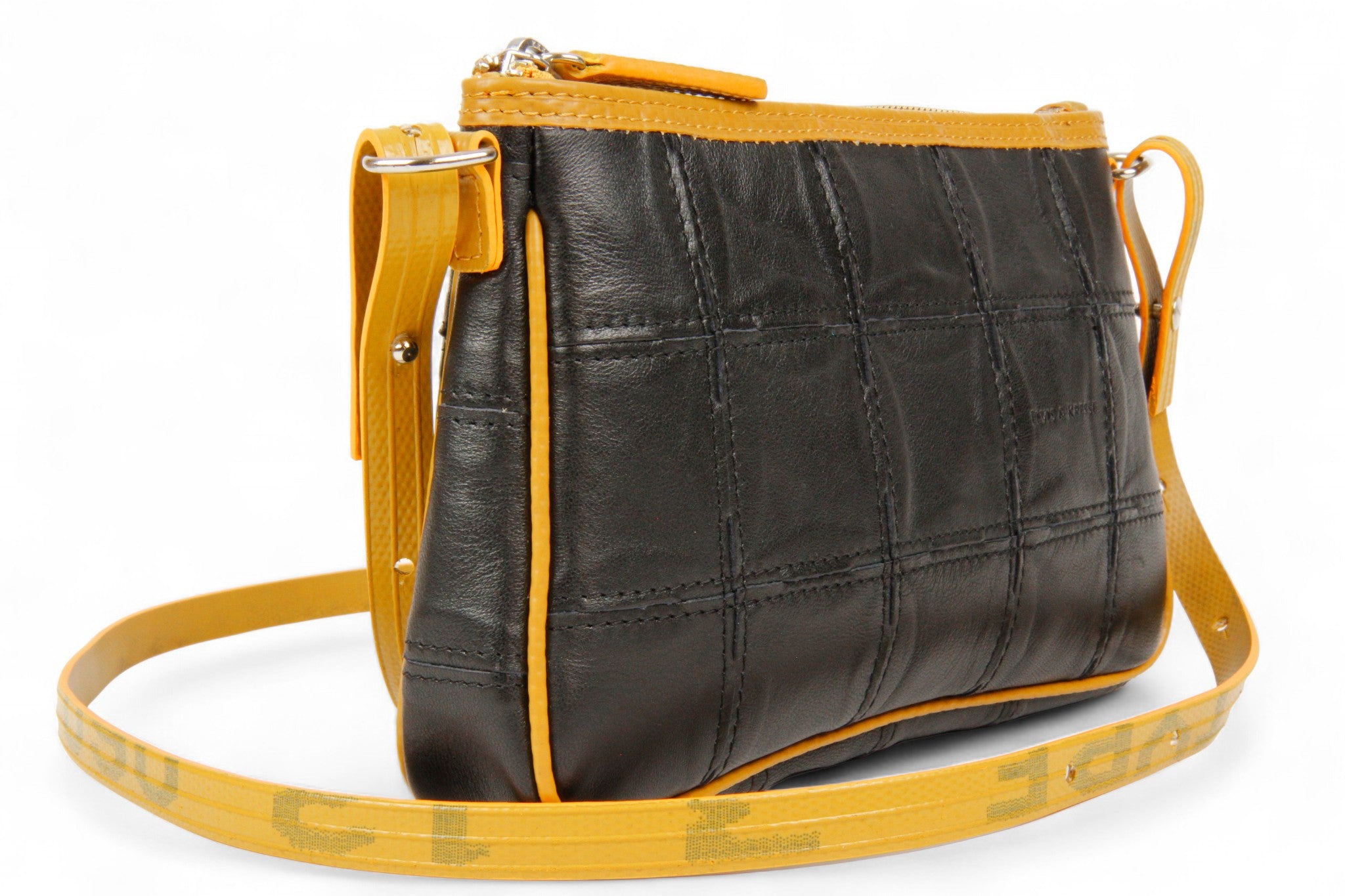 Our versatile 3-in-1 crossbody clutch, made with rescued leather and fire-hose, moves with you from your daytime tasks to evenings out. Switch between either the short strap or the longer strap for a hands-free crossbody that is perfect for everyday adventures and travelling light. You can also remove both straps and carry it in your hand, or tucked under your arm, like a classic clutch.