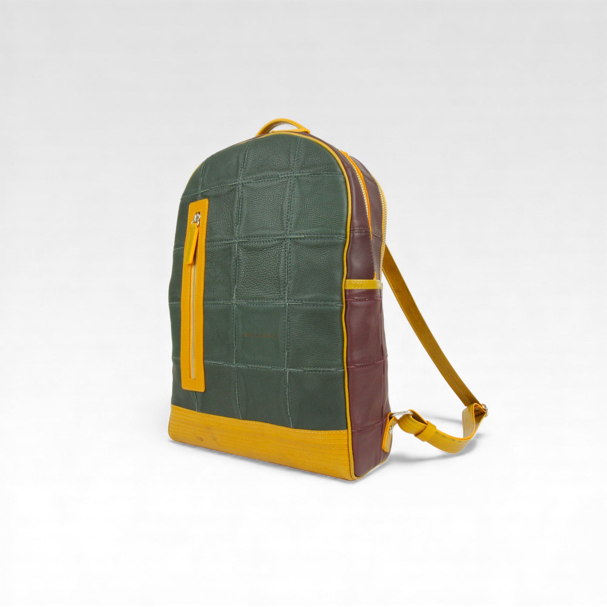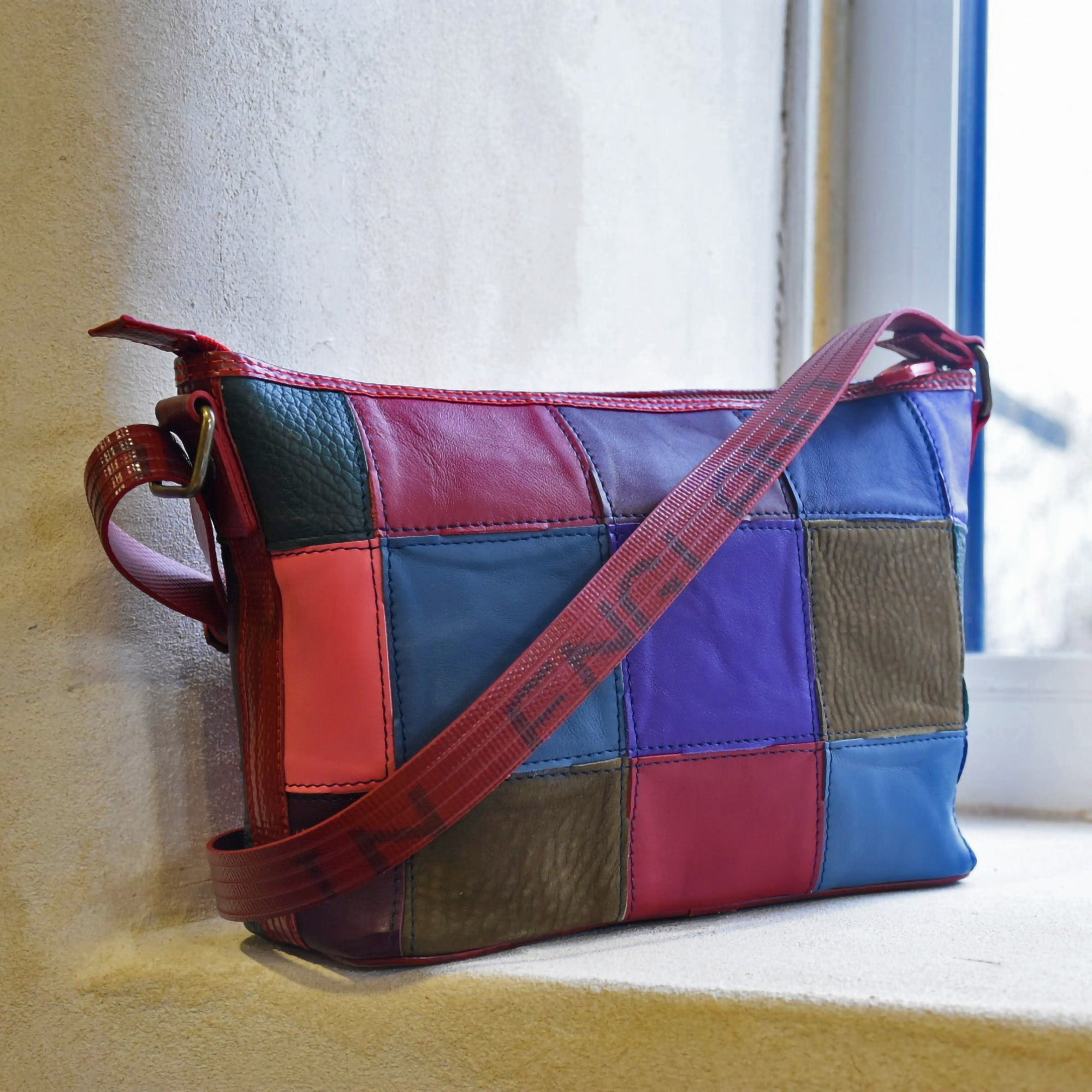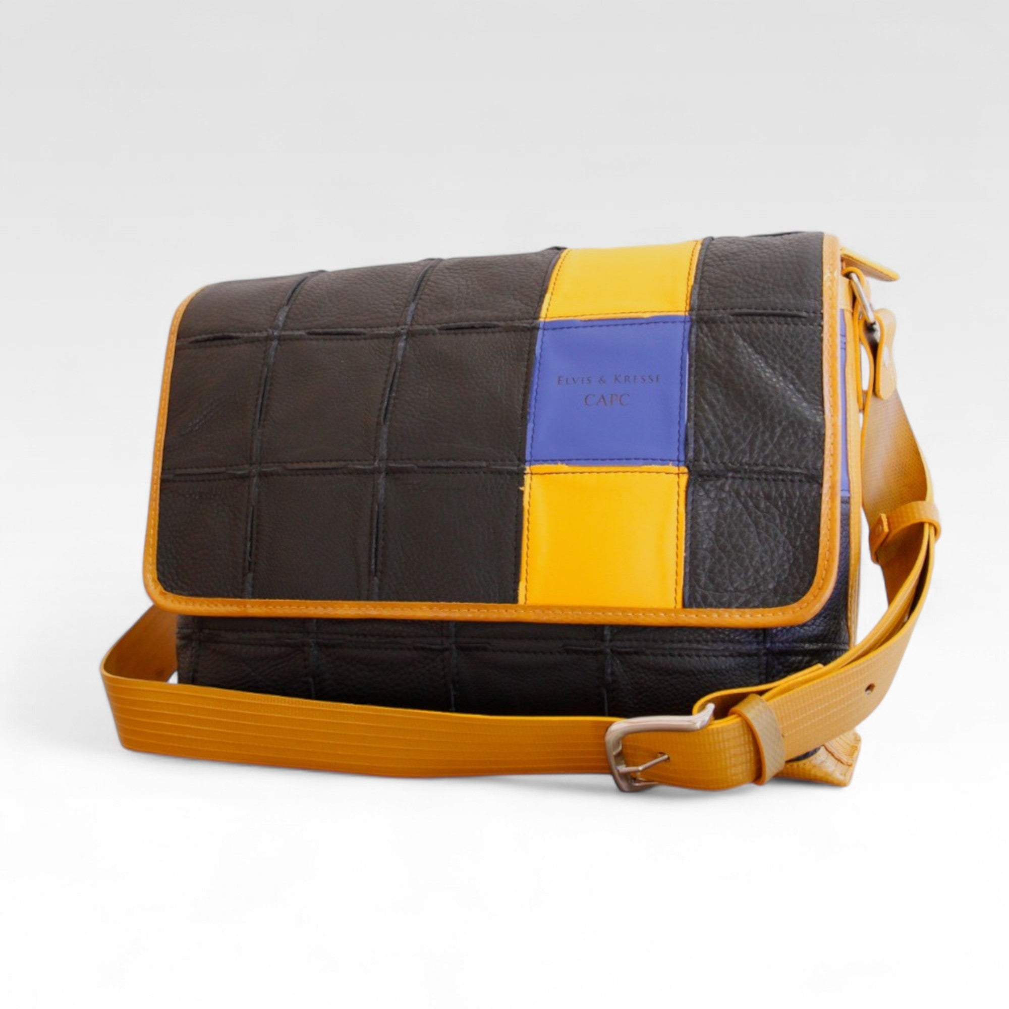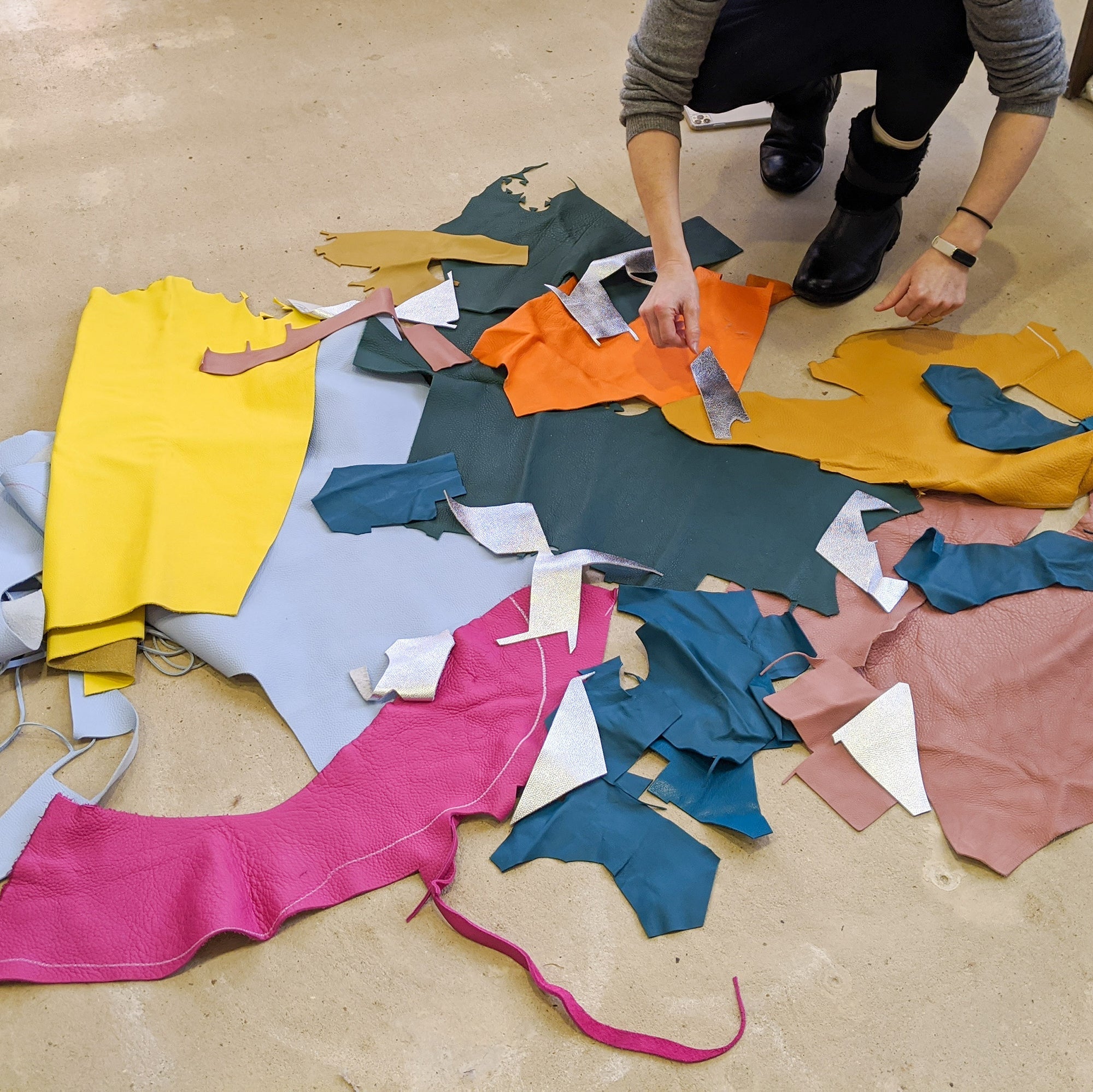 The Elvis & Kresse Fire & Hide Collection combines stunning rescued leather with our signature decommissioned fire-hose. We rescue leather off-cuts from the production of Burberry leather goods and have a partnership with Burberry with the aim of changing the future of leather waste. We have designed a lego-like system which allows us to transform small, seemingly unusable leather pieces into whole new hides.