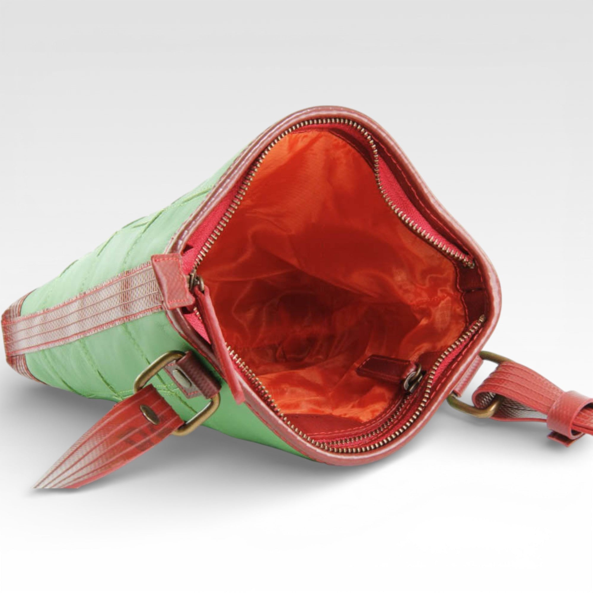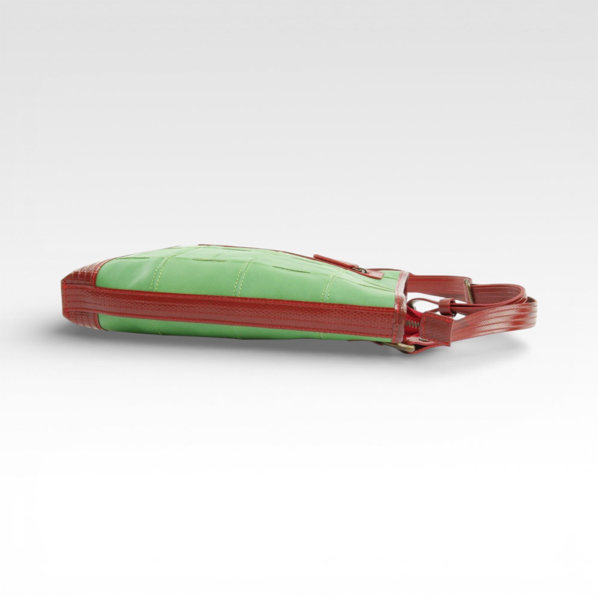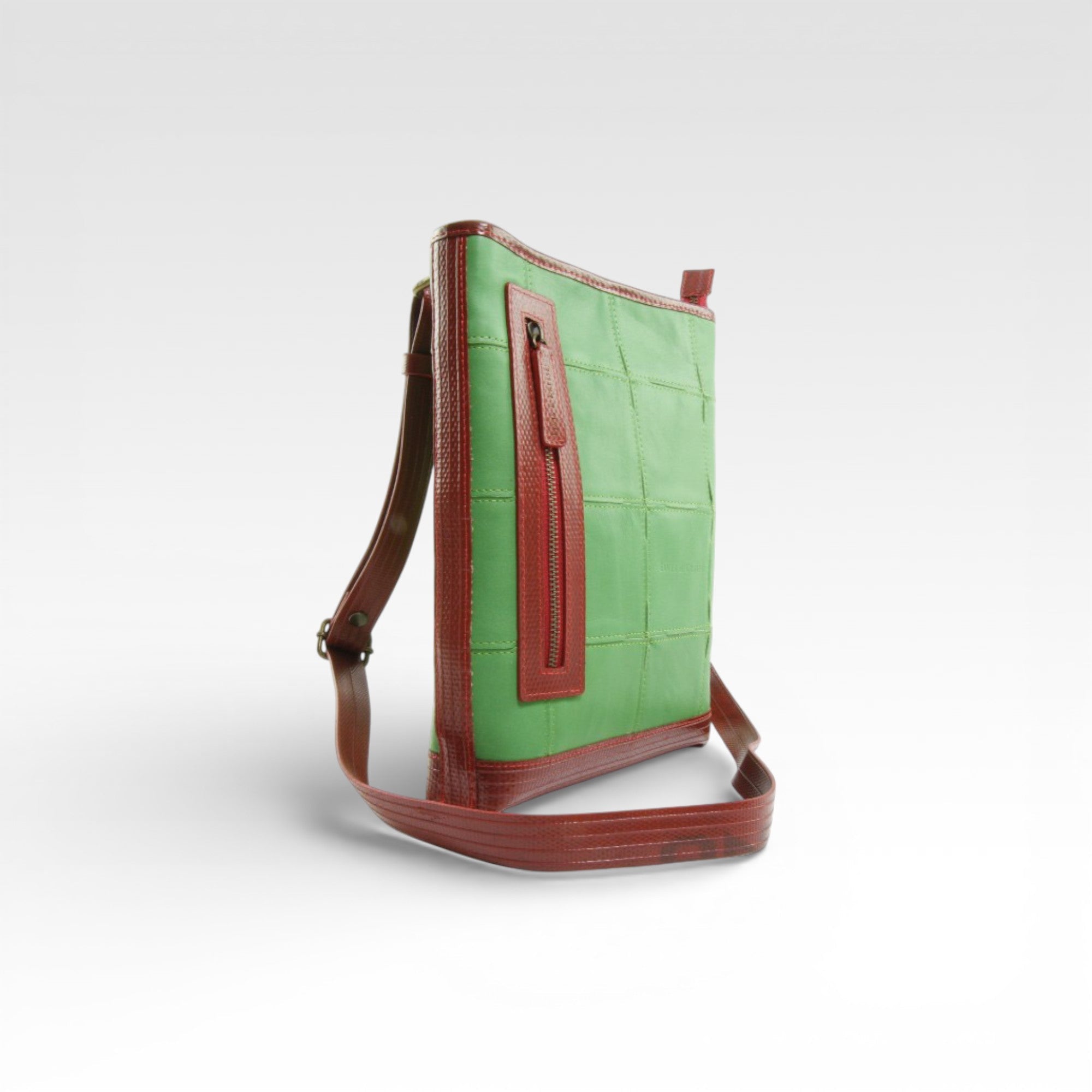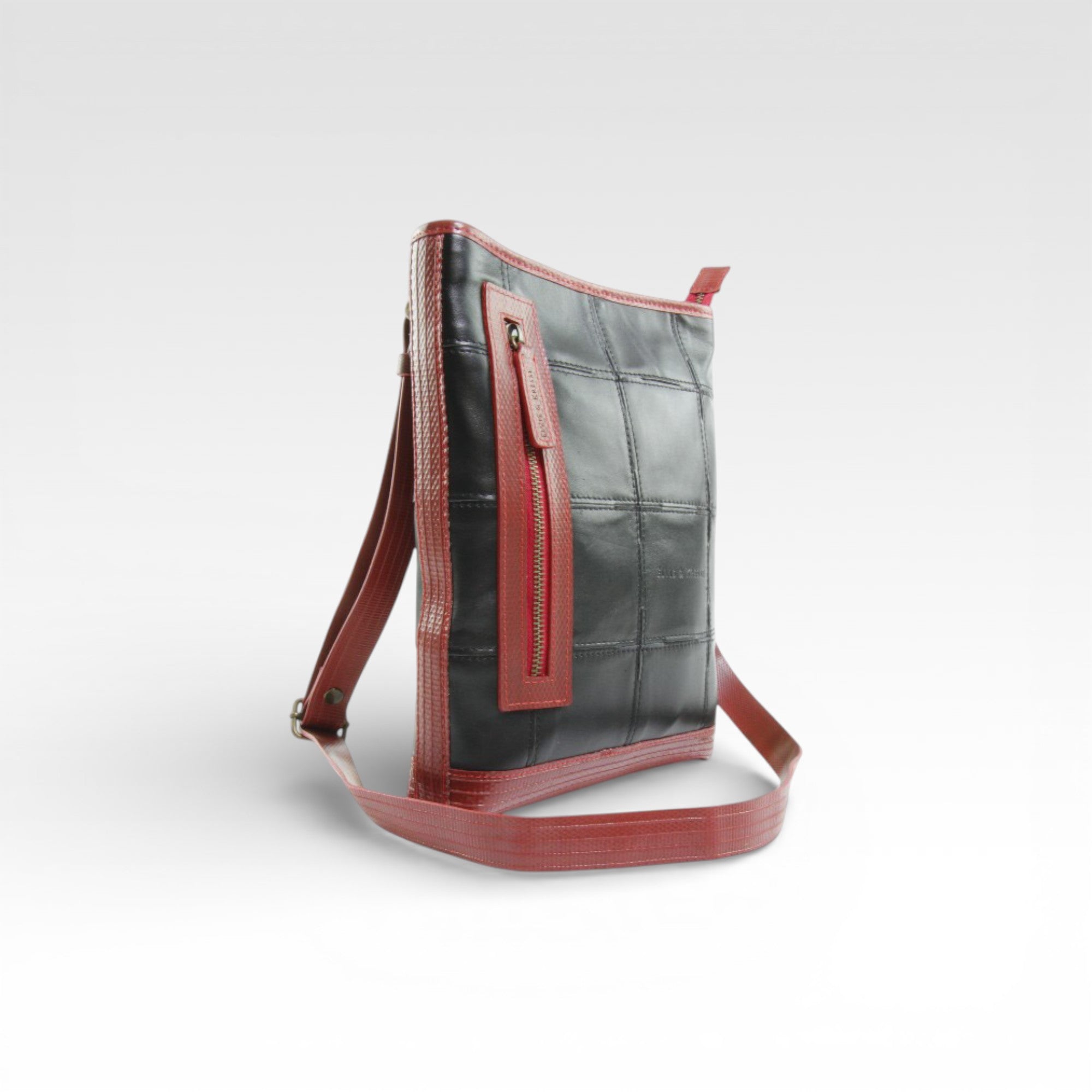 Our Leather Reporter Bag is the refined partner for all your daily essentials. It is handmade from a combination of rescued leather and our genuine decommissioned British fire-hose. The lining is crafted from reclaimed military-grade parachute silk. There is 1 internal zipped pocket and 1 external zipped pocket for quick access. Featuring a fully adjustable shoulder strap, the bag is unisex and is designed to be worn over the shoulder or across the body.