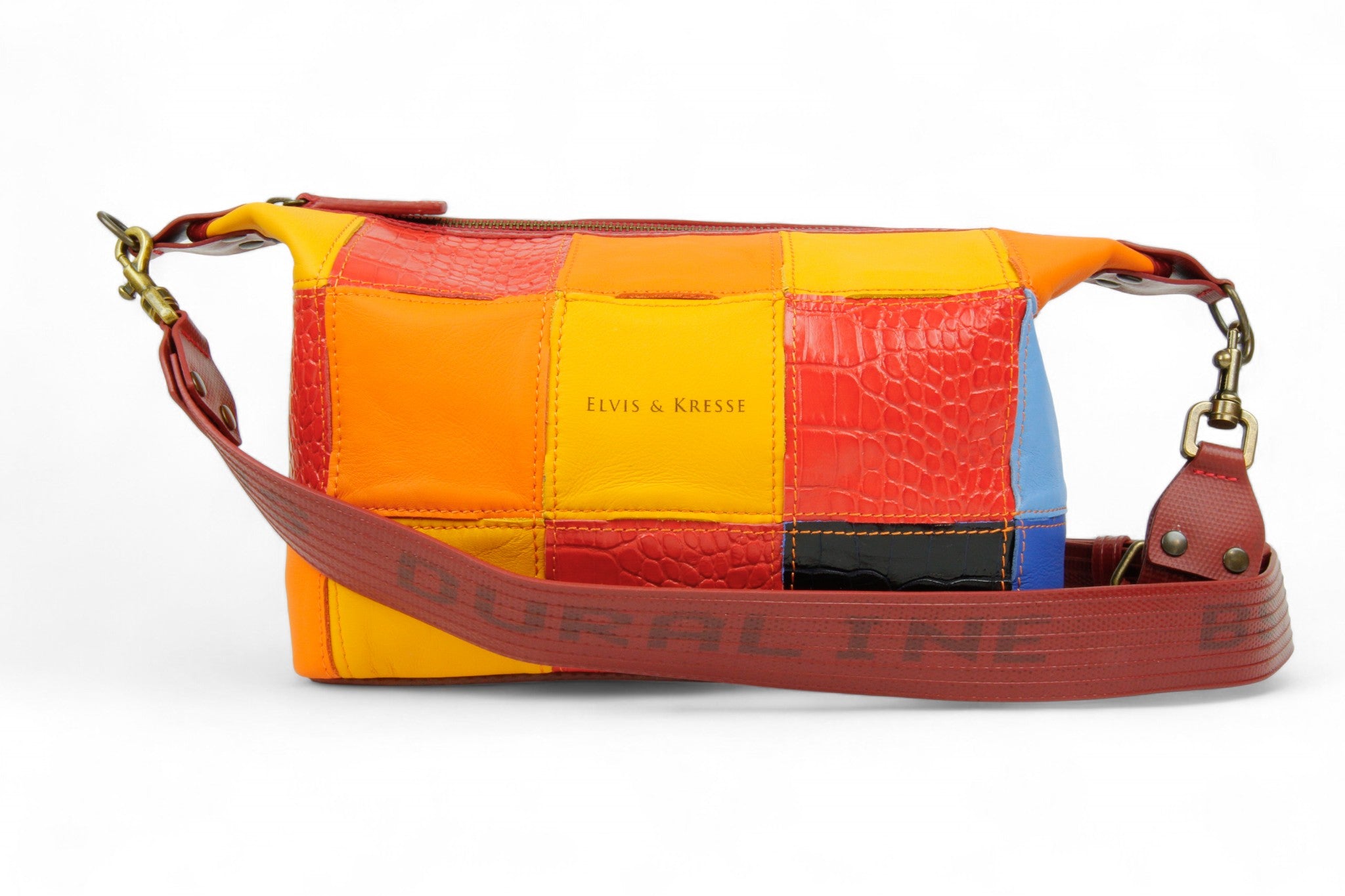The Elvis & Kresse Fire & Hide Collection combines stunning rescued leather with our signature decommissioned fire-hose. We rescue leather off-cuts from the production of Burberry leather goods and have a partnership with Burberry with the aim of changing the future of leather waste. We have designed a lego-like system which allows us to transform small, seemingly unusable leather pieces into whole new hides.