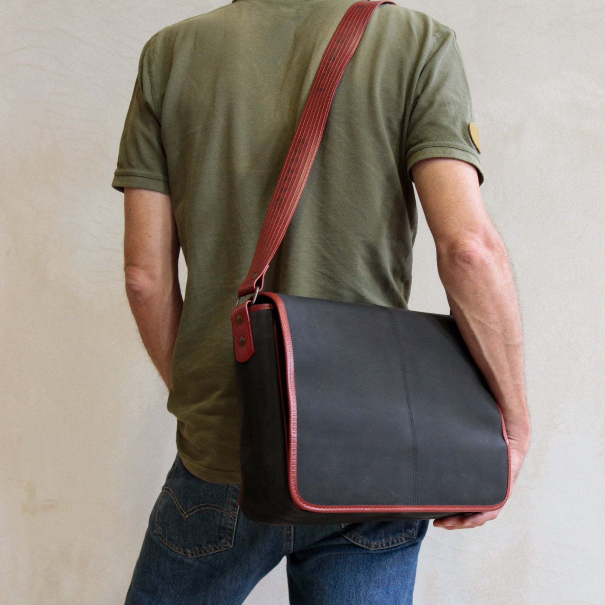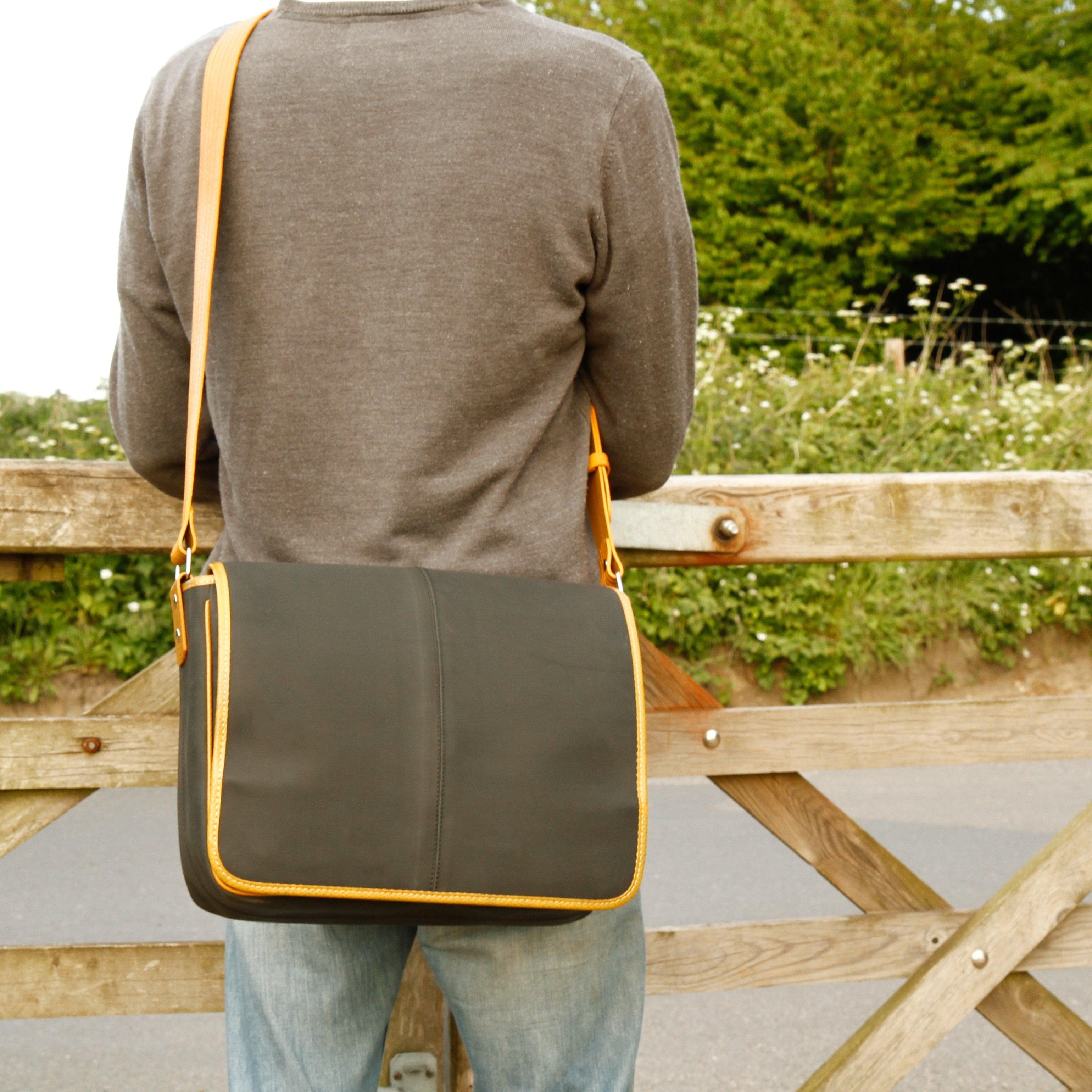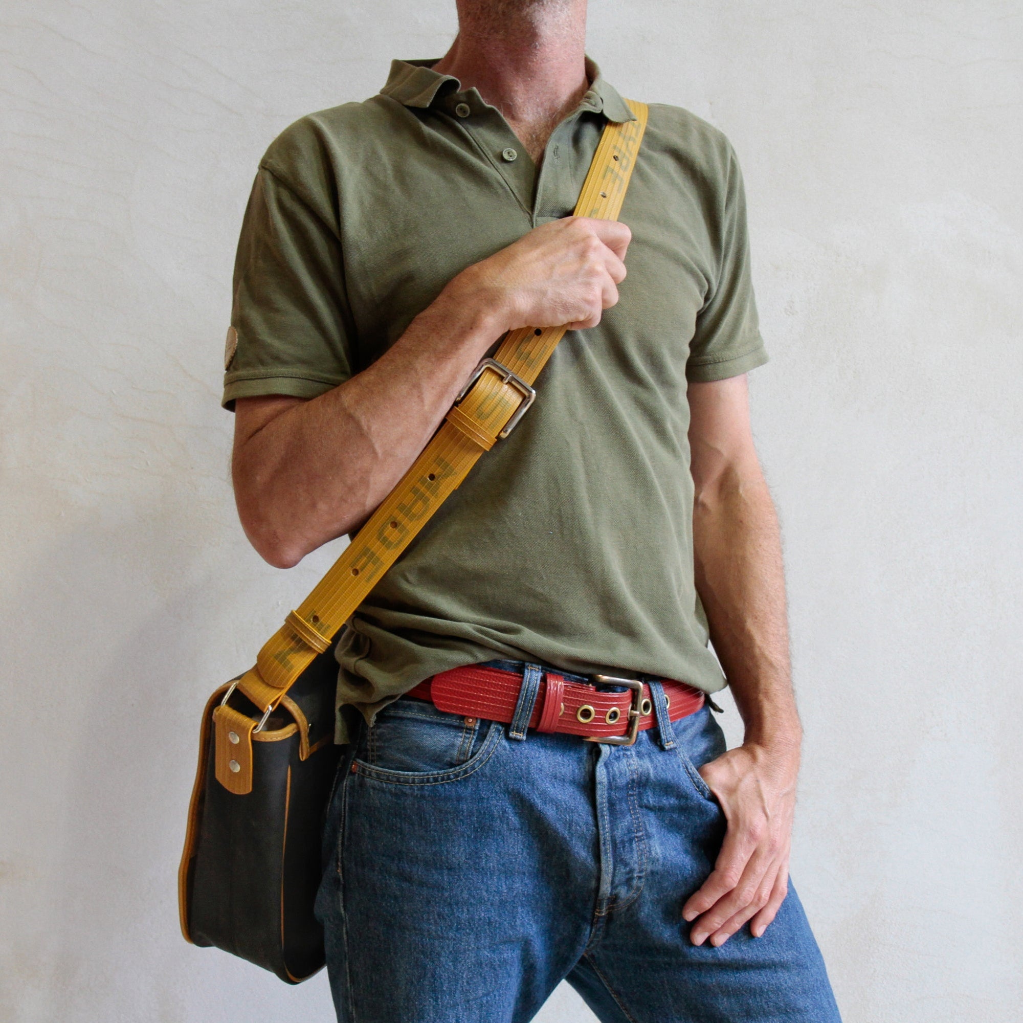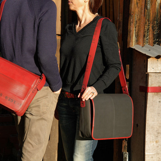 The Elvis & Kresse Messenger Bag is made from a combination of reclaimed printing blanket and genuine decommissioned fire-hose. The lining is made from reclaimed cotton and rescued military-grade parachute silk. A great every day bag with a full length flap, with hidden magnet closures, which will keep your valuables safe. It has an internal zip pocket, a laptop divider and 1 full length zipped pocket under the flap.