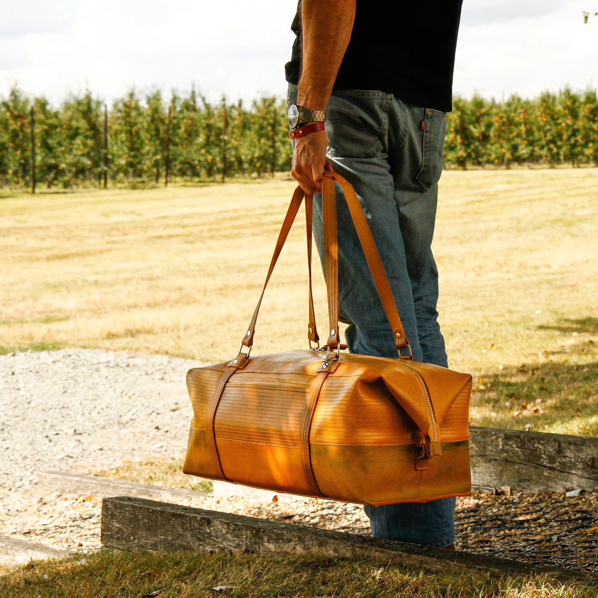 Previously deployed in active duty for up to 25 years, fighting fires around the UK, the hard-wearing hose is perfectly suited for your travels. The wide mouth opening of our holdall makes packing, unpacking and searching very easy and the generous sizing means you can take everything you need for a weekend away. The bag has an easy access external pocket, an internal zip pocket and 3 further internal poacher-style pockets.