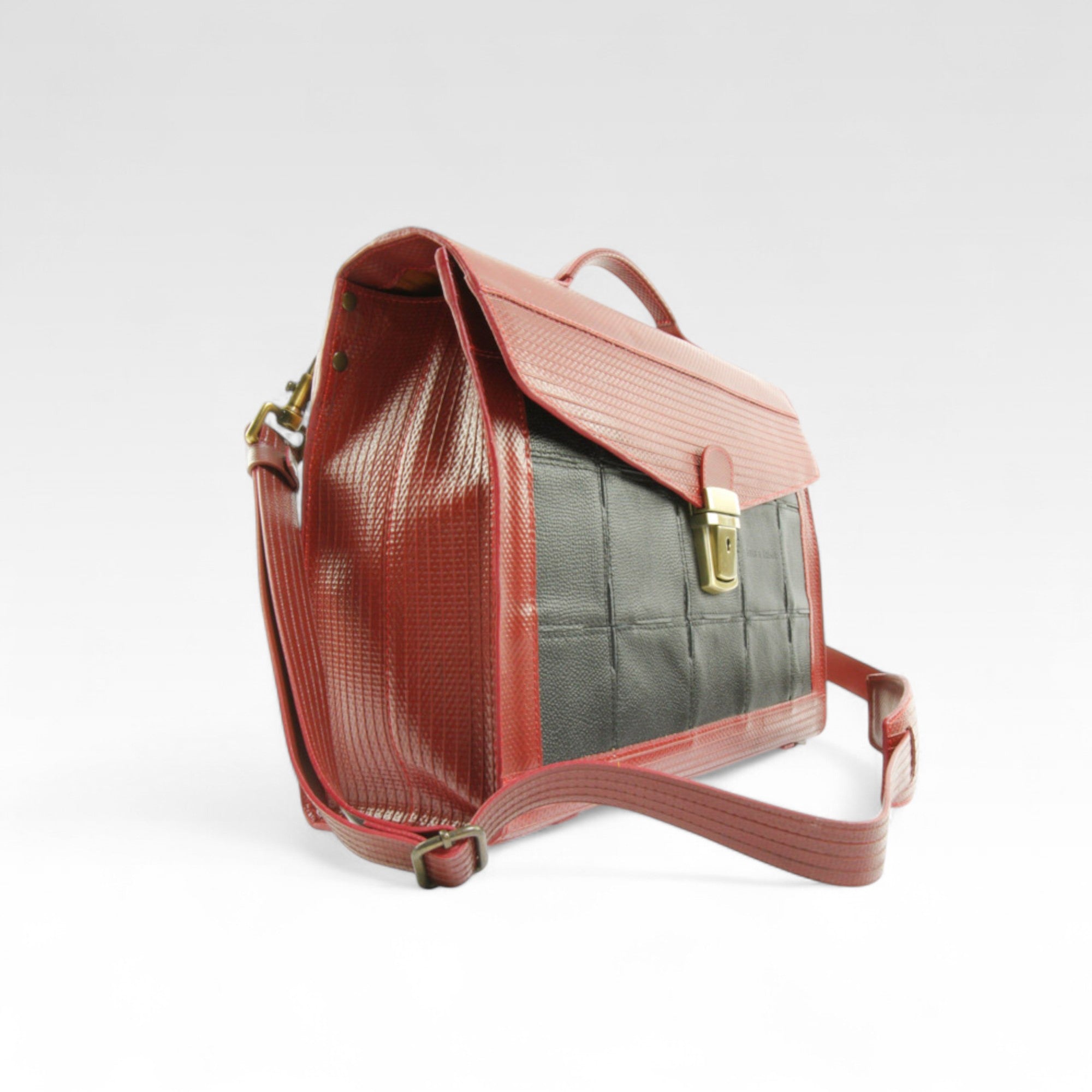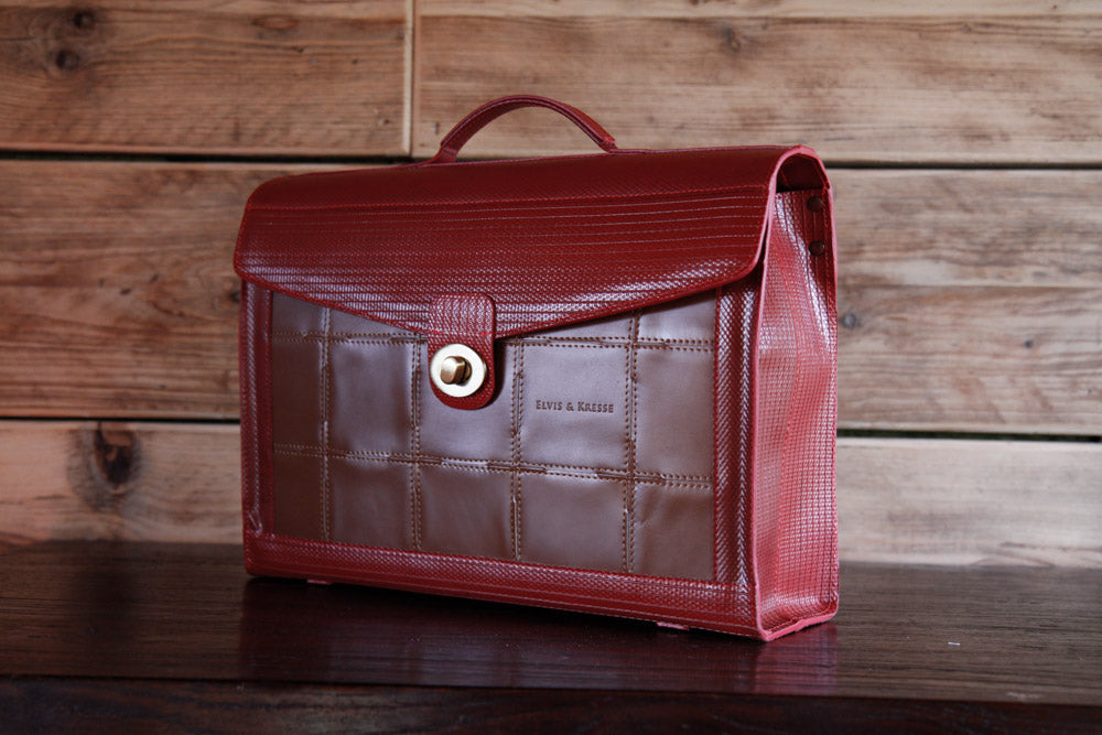 Available in multiple different leather colours and two different fire-hose trims. The ethical briefcase comes with a fully adjustable and detachable shoulder strap.
