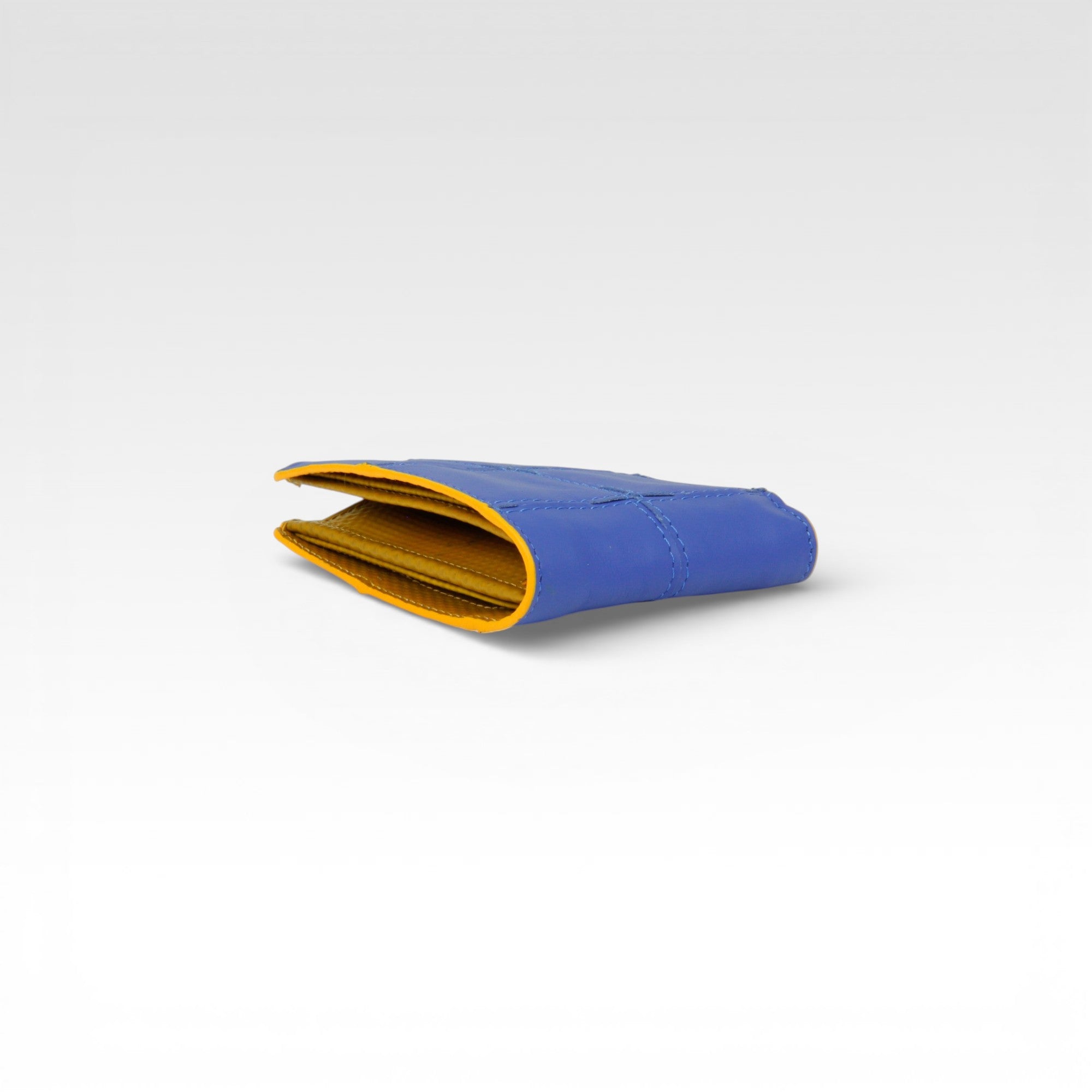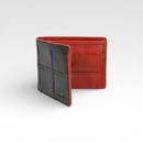 The Billfold Wallet with Coin Pocket combines handwoven rescued Burberry leather outer and decommissioned fire-hose inner with a reclaimed military-grade parachute silk lining.