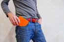 • Available in Red or rare Yellow fire-hose with various leather colours