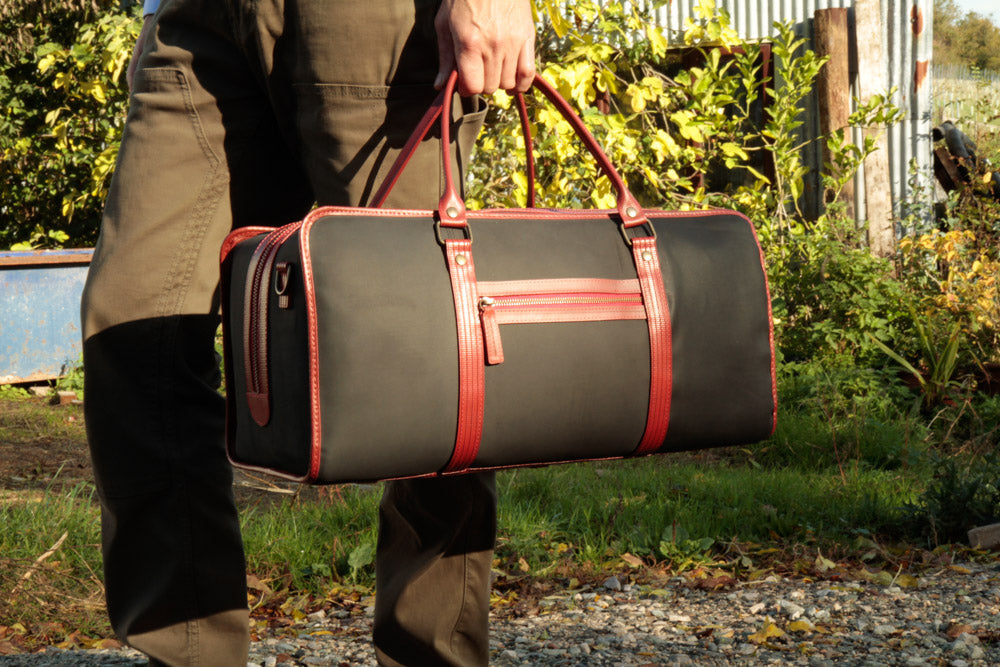 The Elvis & Kresse Overnight Bag is sustainably handmade from reclaimed printing blanket and genuine decommissioned fire-hose. The lining is made from a combination of material rescued from Burberry's Yorkshire workshop and military-grade parachute silk. Each bag is totally unique, no two Elvis & Kresse bags are ever the same.