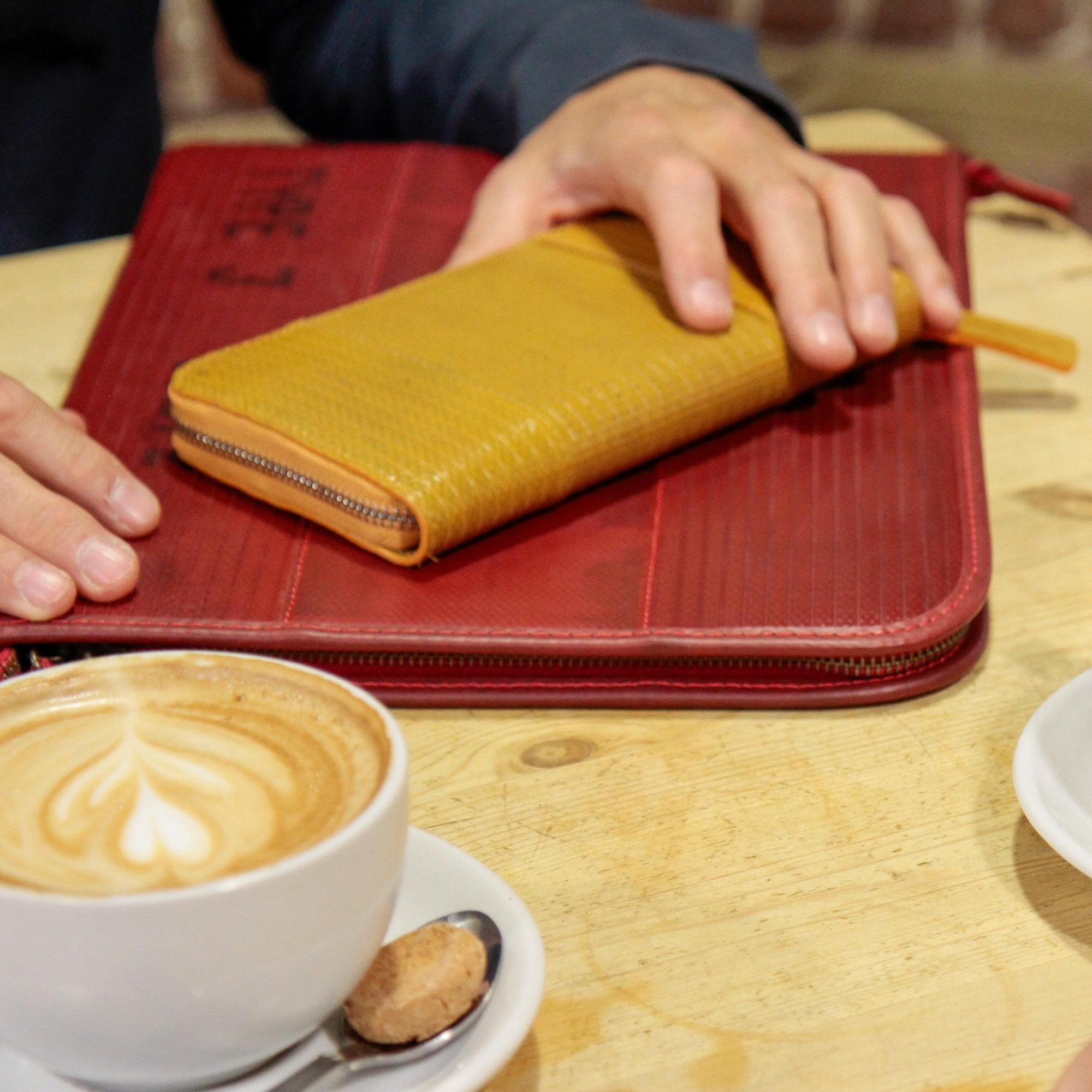 The Elvis & Kresse ladies’ vegan leather purse is made from decommissioned red fire-hose and lined with reclaimed parachute silk. It features 12 credit card slots, a zipped coin compartment, a section for notes and 2 additional sections for receipts.