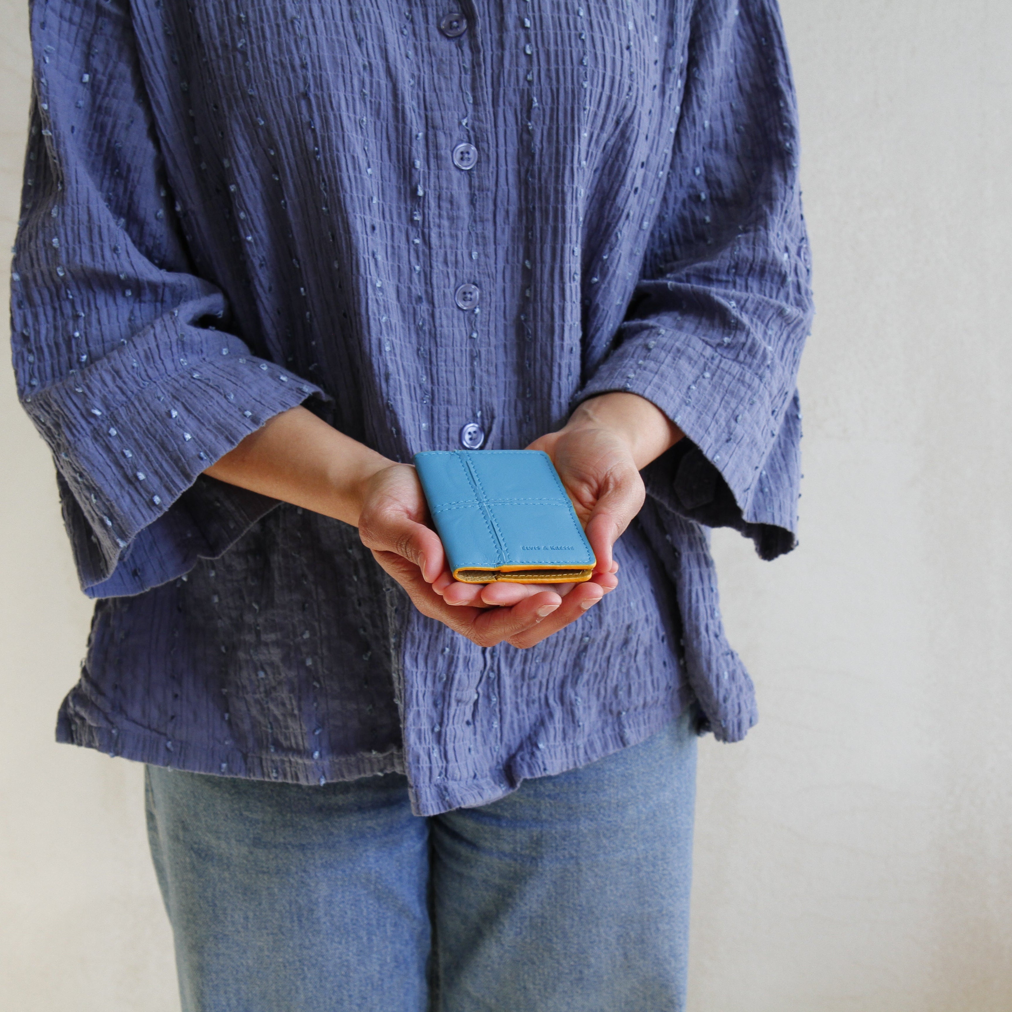 The Leather Card Holder combines rescued Burberry leather and decommissioned fire-hose and is lined with reclaimed parachute silk. This minimal clamshell design is a great small leather card holder if you like to keep things simple and sleek.