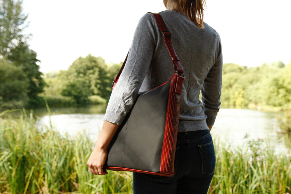 Our Printing Blanket collection is made from reclaimed printing blankets, rescued from the printing industry, and combined with our signature decommissioned fire-hose. The rescued blankets are re-engineered to create a visually stunning, black textile that is strong and beautiful to the touch. This range maintains all the design features of the full fire-hose versions.