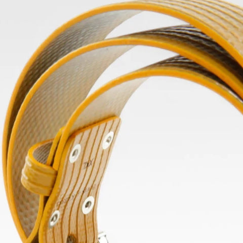 Our Big Yellow Belt - handcrafted from decommissioned yellow fire-hose with a solid West End buckle in a silver gun metal finish, this 4cm wide belt really stands out in a crowd. No two yellows are the same, as fire-hoses age their colour tends to darken which means that some of our yellow belts can be a brighter English Mustard colour and others can be much closer to a tan. If you have any questions or preferences, do let us know. At the moment we mostly have our darkest yellows available.
