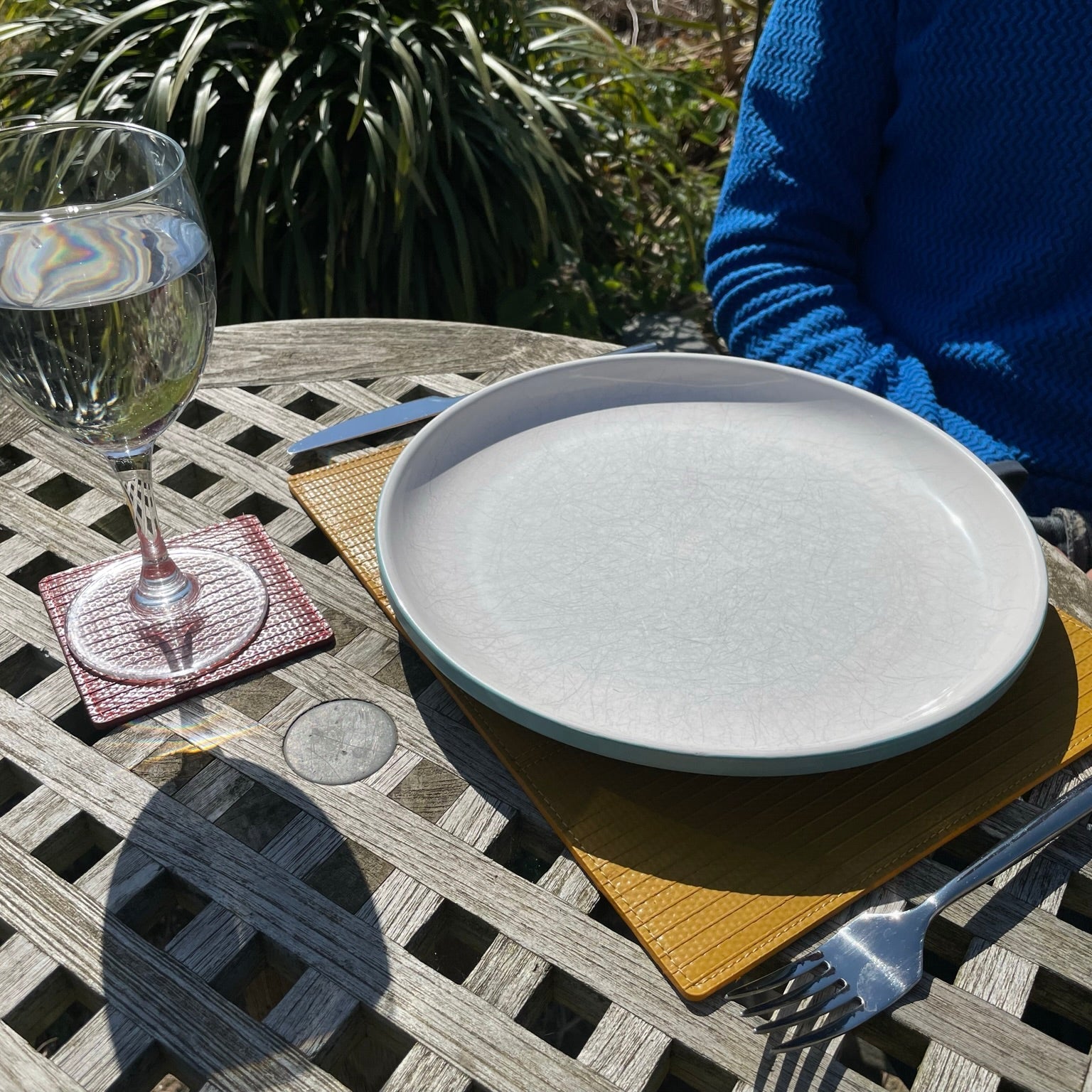 The fire-hose Coasters pair perfectly with the Elvis & Kresse Luxury Placemats.