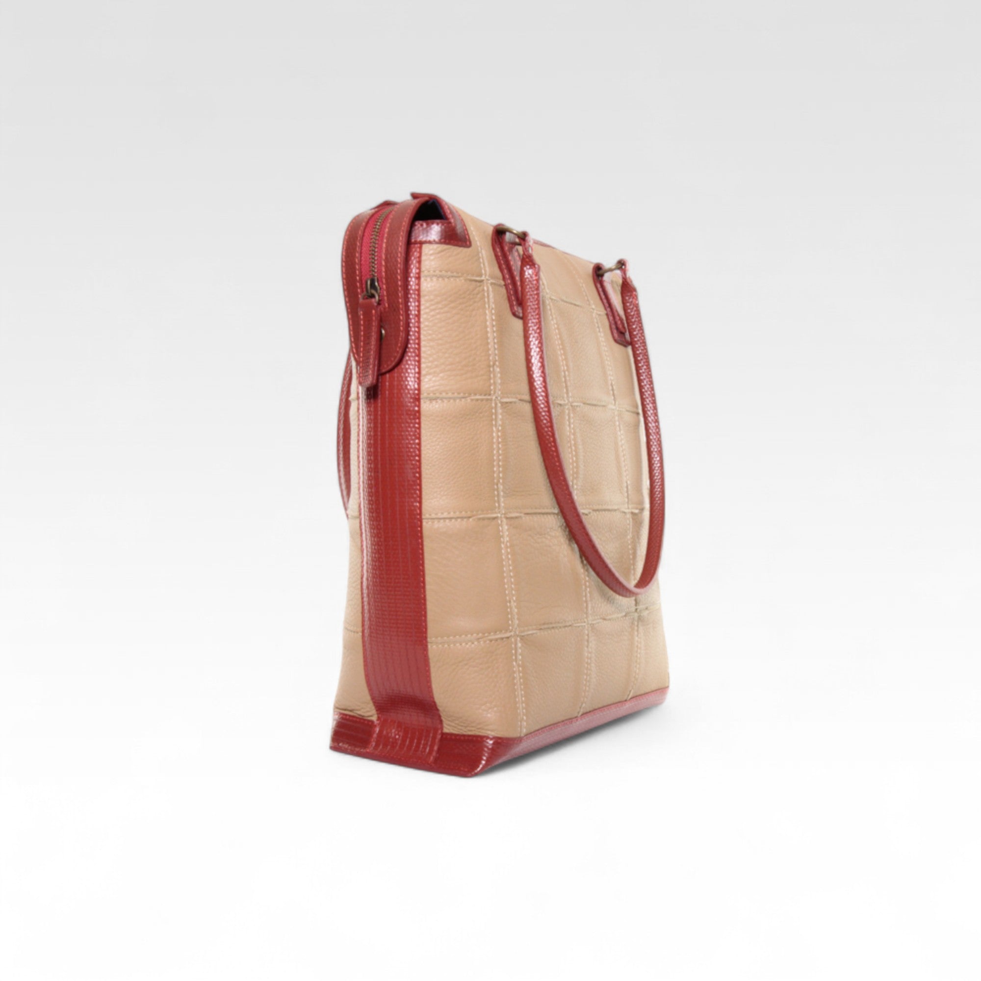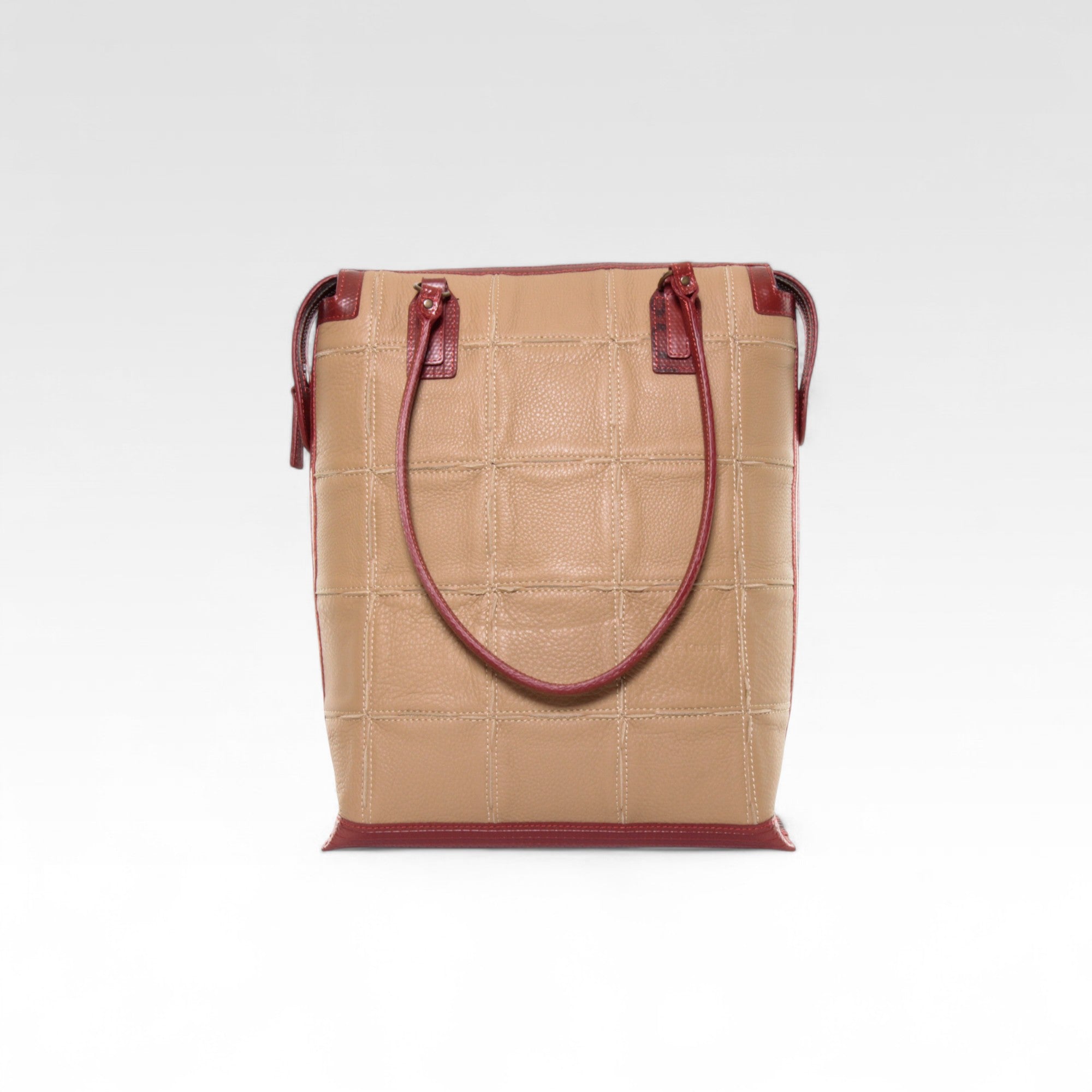 This large leather tote bag is large enough to fit 3 bottles of wine and a 13" laptop... trust us! Kresse took that to an event once and used the Dutch Tote to get it there safely.