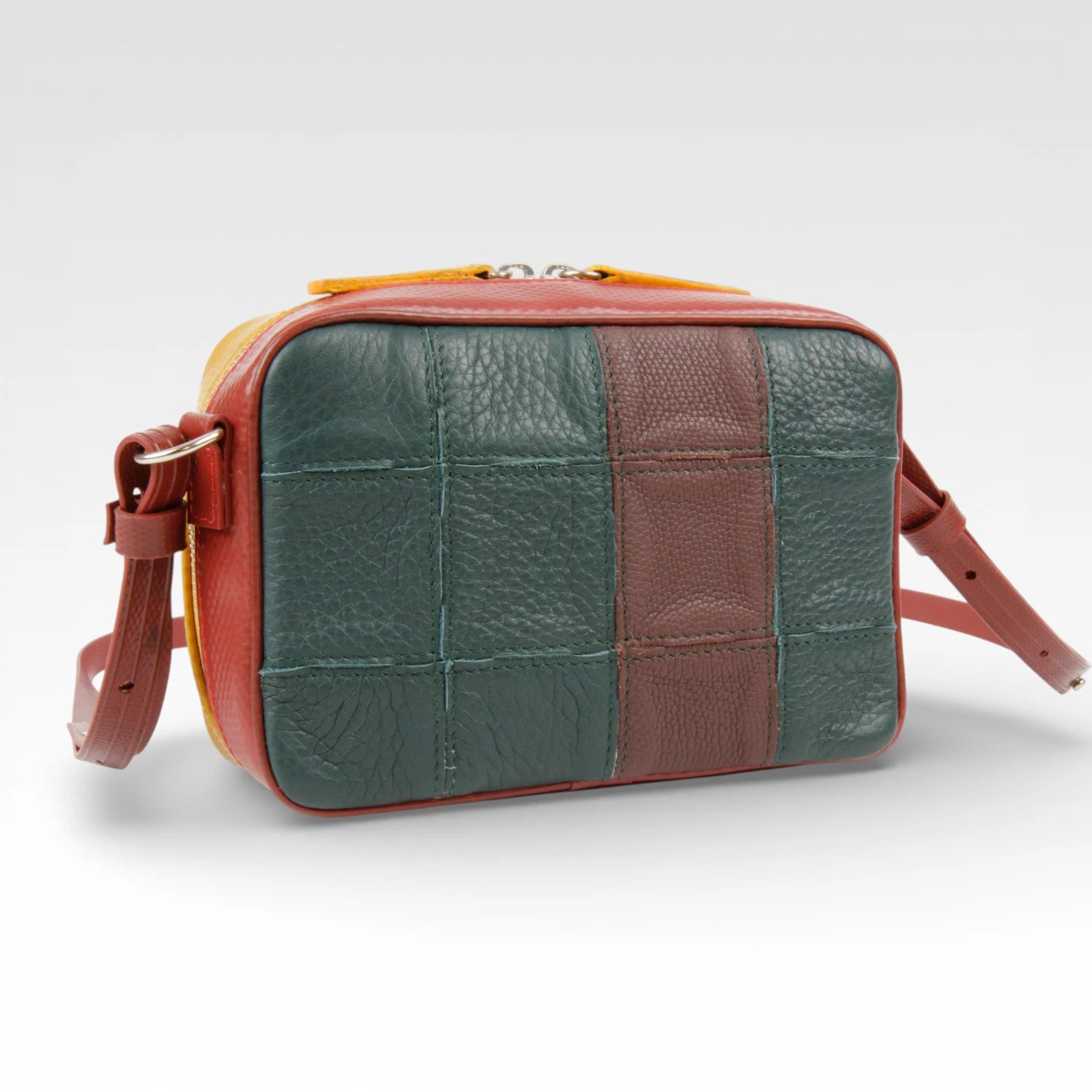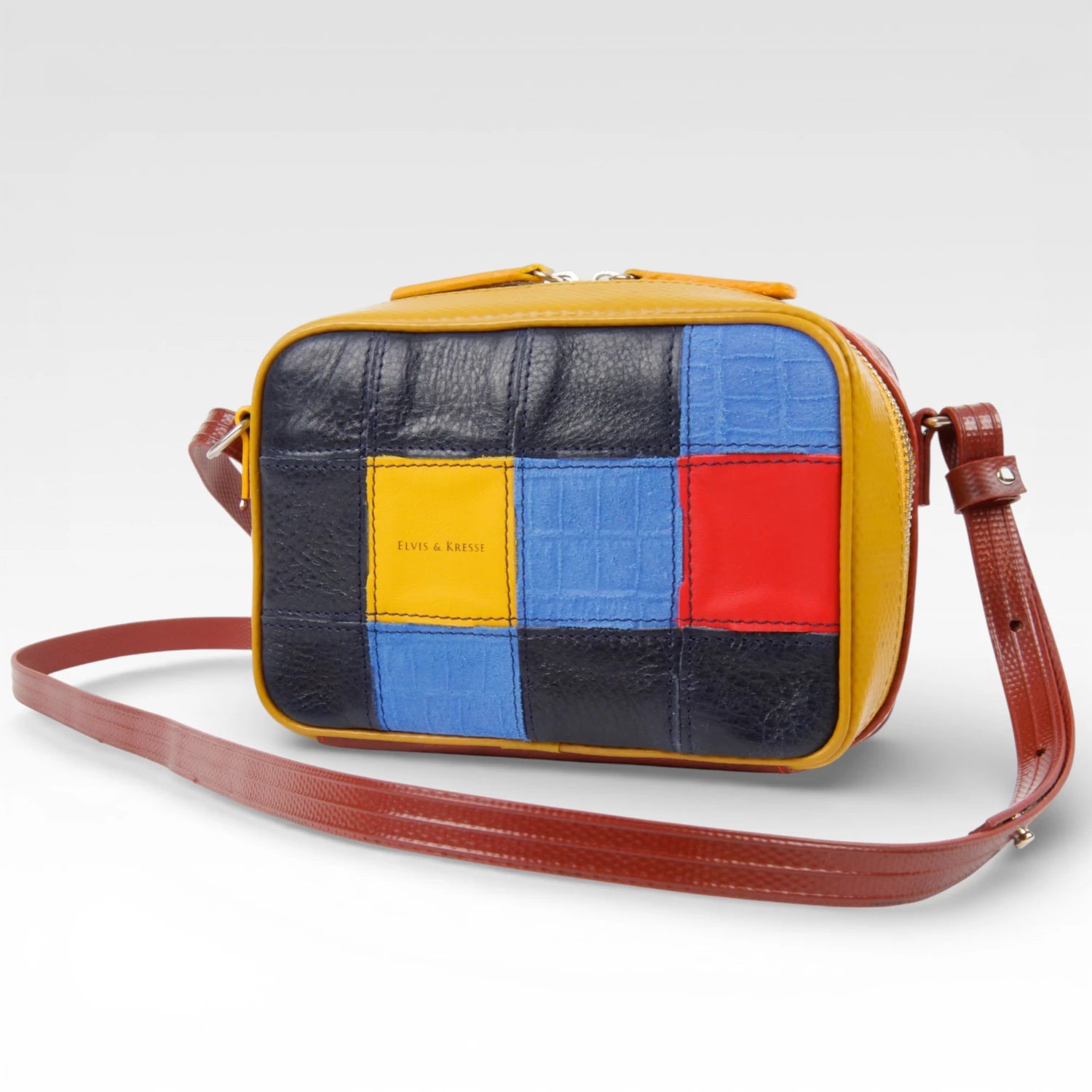 The Elvis & Kresse Fire & Hide Collection combines stunning rescued leather with our signature decommissioned fire-hose. We rescue leather off-cuts from the production of Burberry leather goods and have a partnership with Burberry with the aim of changing the future of leather waste. We have designed a lego-like system which allows us to transform small, seemingly unusable leather pieces into whole new hides.