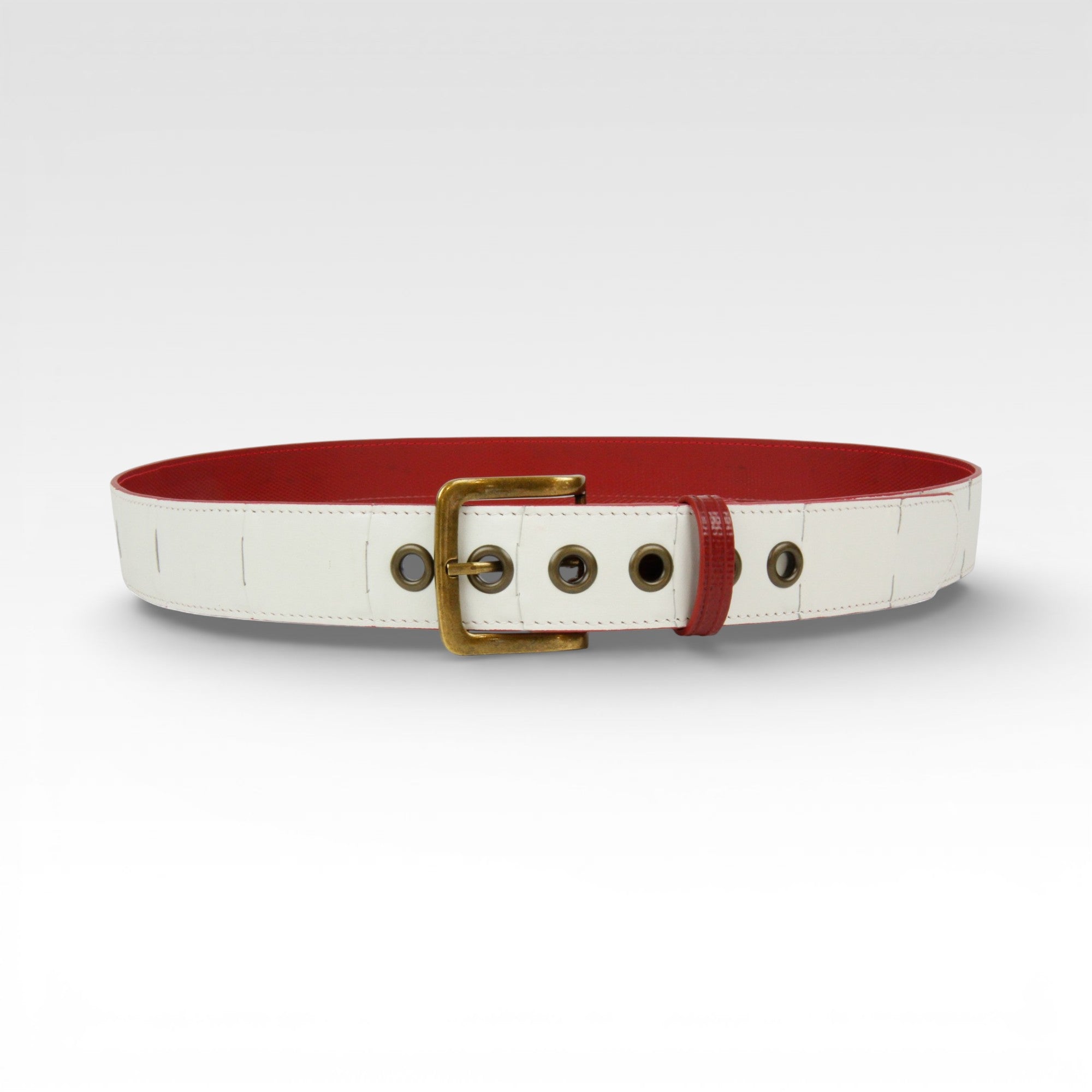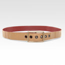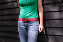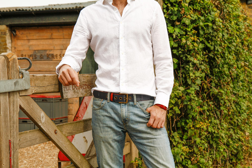 The leather we rescue from Burberry comes to us in very limited quantities, which means we can only ever craft a few pieces of any colour. The leather belt is available in the above colour combinations, but always with either yellow or red fire-hose on the inside. Different colour combinations will have either a silver or antique brass buckle and matching eyelets. We recommend putting these on with care, to protect the leather weave and ensure the longevity of your belt.