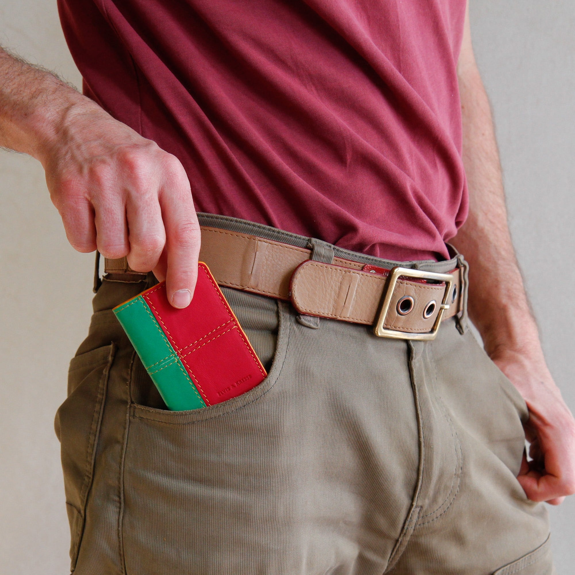 The Leather Card Holder combines rescued Burberry leather and decommissioned fire-hose and is lined with reclaimed parachute silk. This minimal clamshell design is a great small leather card holder if you like to keep things simple and sleek.