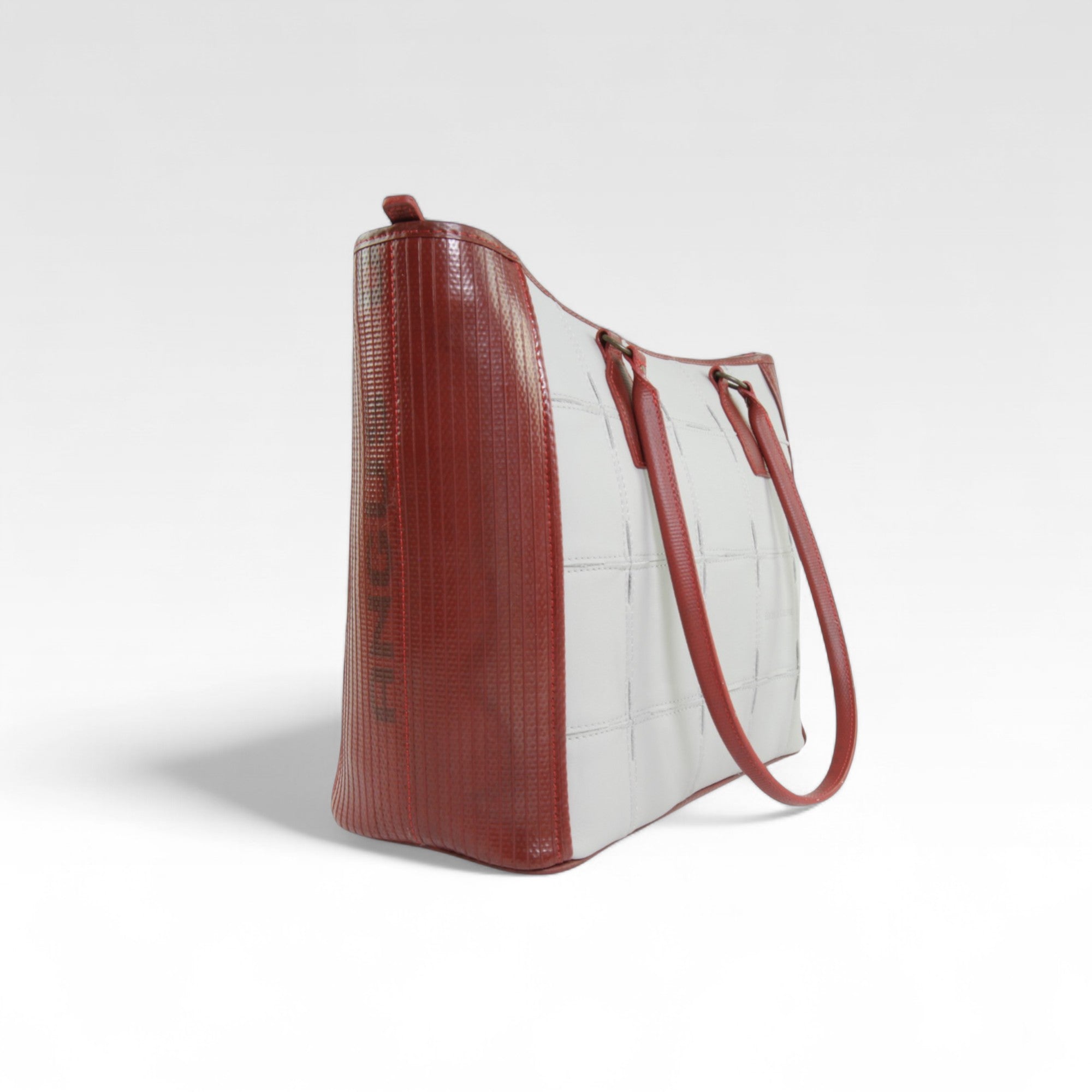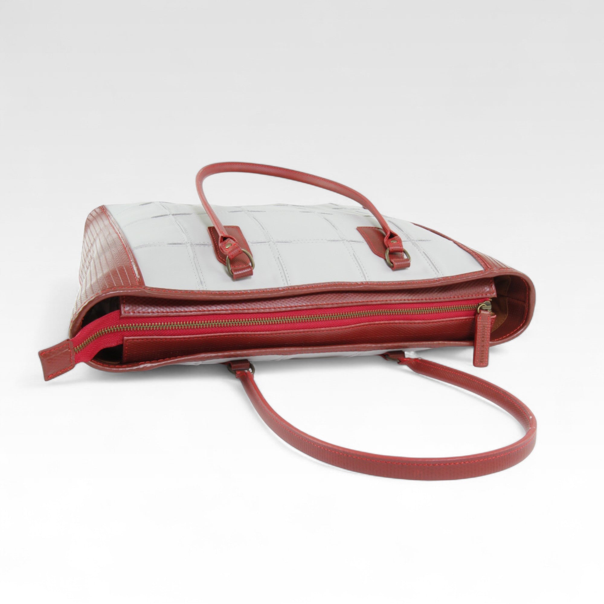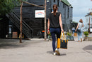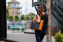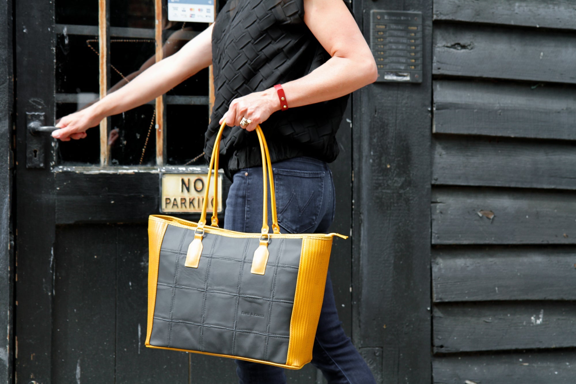 Being the same size as our full fire-hose Tote Bag it is large enough to keep everything you need for a day out: iPad or laptop, phone, purse, keys, reusable water bottle, lunch box, book, scarf and flats.