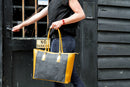 The Leather Classic Tote bag is handcrafted using the finest rescued leather accentuated by our signature decommissioned fire-hose and finished with a reclaimed cotton lining from Burberry Mills. A great all day bag for those that like to carry more. Designed to be held in the hand or carried over the shoulder, our leather Tote bag has an inside zip pocket and 2 additional poacher-style pockets.
