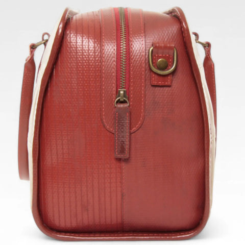 - Handles and adjustable cross-body strap in genuine decommissioned British fire-hose