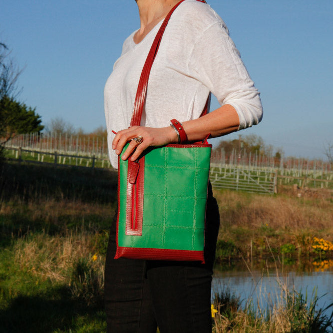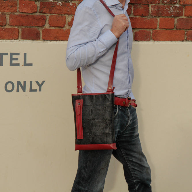 Our Leather Reporter Bag is the refined partner for all your daily essentials. It is handmade from a combination of rescued leather and our genuine decommissioned British fire-hose. The lining is crafted from reclaimed military-grade parachute silk. There is 1 internal zipped pocket and 1 external zipped pocket for quick access. Featuring a fully adjustable shoulder strap, the bag is unisex and is designed to be worn over the shoulder or across the body.