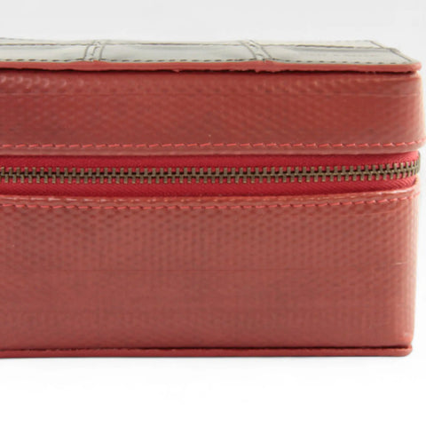 The Large Leather Box is made from rescued Burberry leather off-cuts, genuine decommissioned fire-hose and lined with reclaimed parachute silk. These beautifully crafted, zipped leather jewellery boxes are perfect for tidying up your clutter or keeping prized possessions safe.  As with the rest of our range, 50% of the profits from this unique piece is donated to charity.