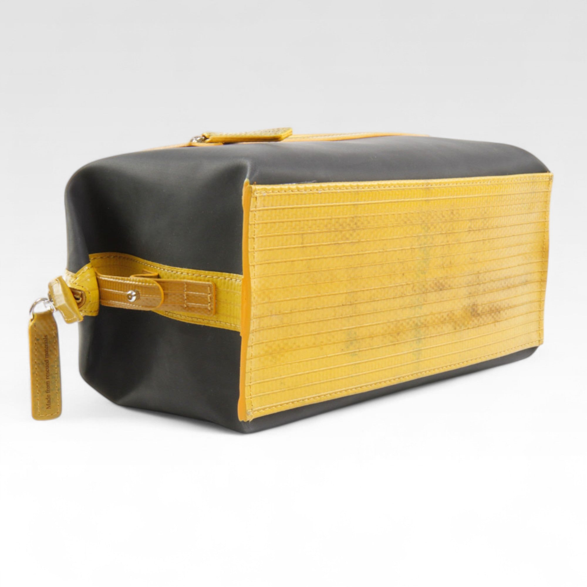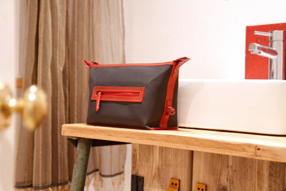 This Elvis & Kresse Large Washbag is made from a combination of reclaimed printing blanket and decommissioned fire-hose and is lined with waste parachute silk. Previously deployed in active duty for up to 25 years, fighting fires around the UK, fire-hose makes a perfect wash bag. Strong enough to tackle the toughest conditions first time around, the hose has been re-engineered to protect your toiletries – the hose itself is obviously waterproof, protecting what’s inside but perhaps more importantly protecting what’s outside from leaky shampoo bottles and exploding toothpaste tubes.
