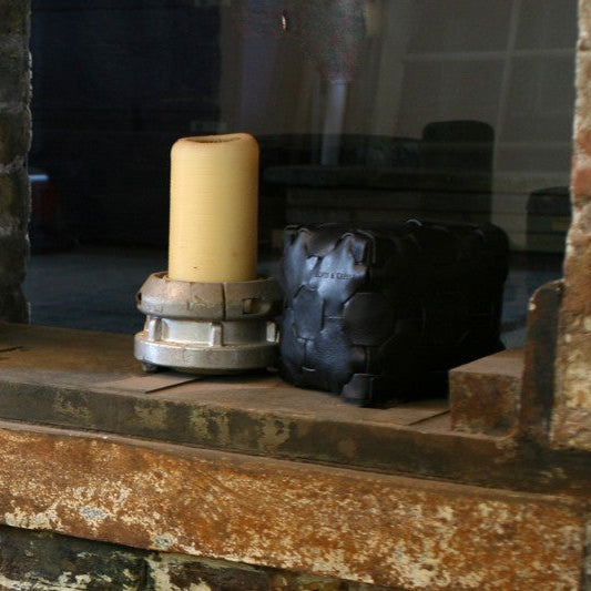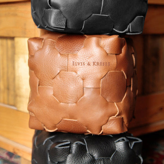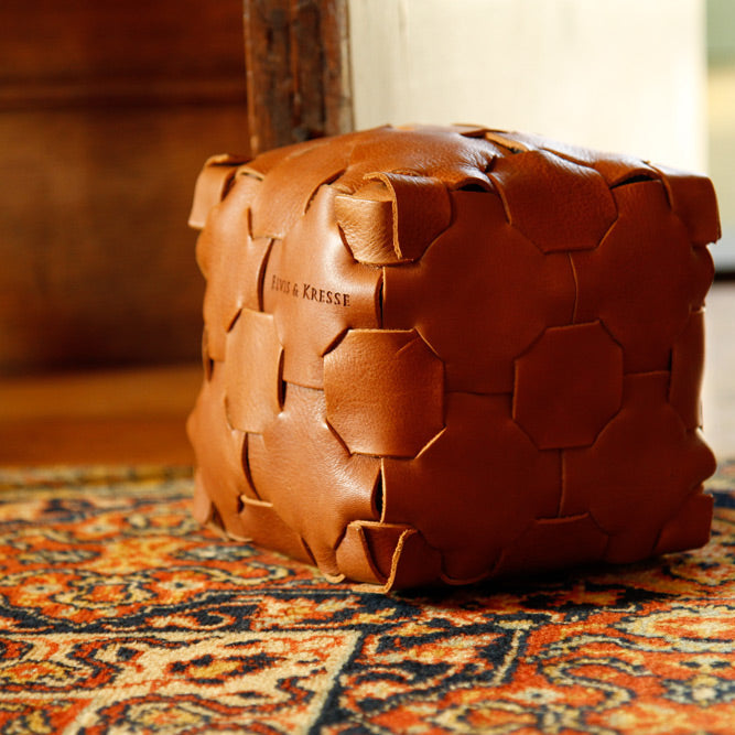 The Elvis & Kresse rescued Leather Cubes are constructed from interlocking pieces of the finest quality leather; leather that we reclaim from a cross section of the very best British leathercraft manufacturers. Our leather partners cherish their hides, the waste they produce is in small seemingly unusable pieces, which is why we have had to develop this modular approach. We only work with the off-cuts produced by our leather partners so every piece we create is unique.