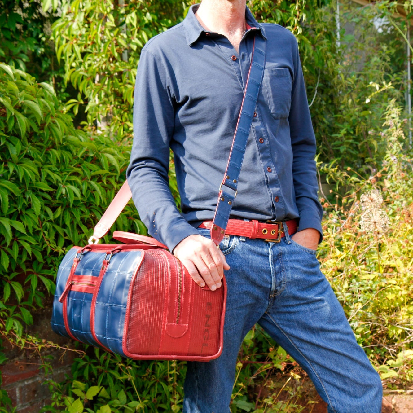 The leather we rescue from Burberry comes to us in very limited quantities, which means we can only ever craft a few pieces of any colour. The leather belt is available in the above colour combinations, but always with either yellow or red fire-hose on the inside. Different colour combinations will have either silver or antique brass metal hardware.
