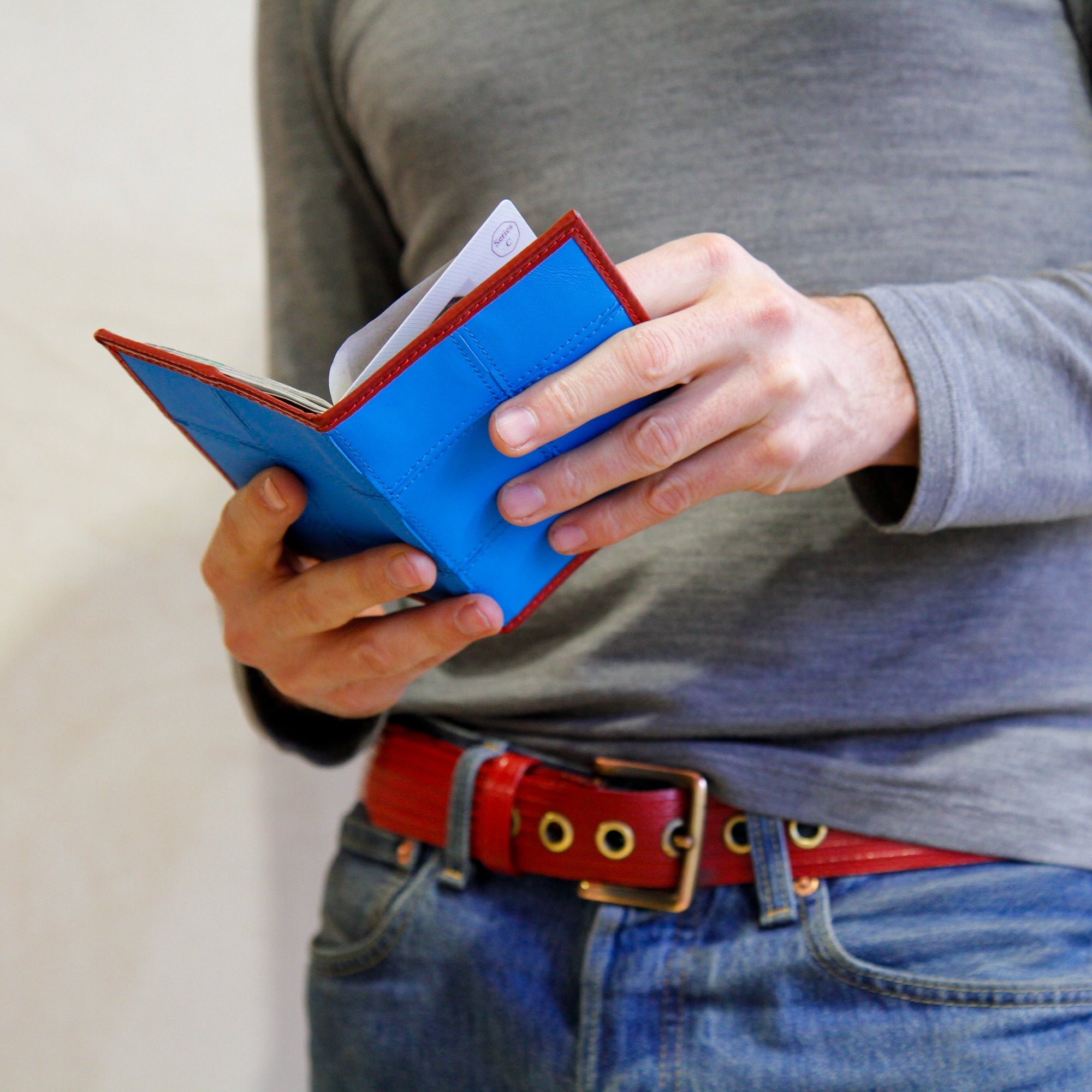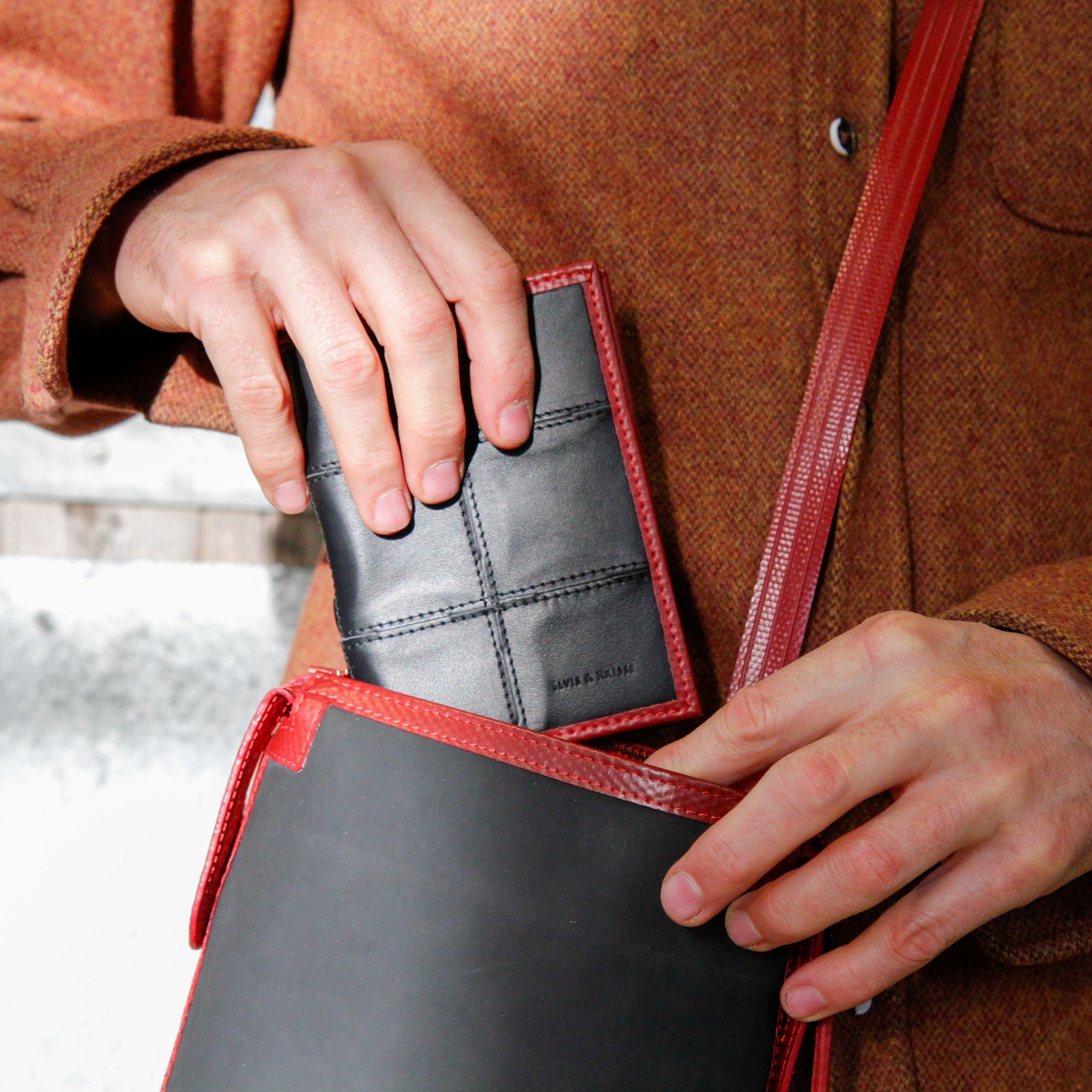 The Elvis & Kresse Passport Cover is ethically made from rescued leather and genuine decommissioned fire-hose. The hose, previously deployed in active duty for up to 25 years, combines perfectly with the hand-woven and hand-stitched leather. The sustainable passport cover is lined with reclaimed military grade parachute silk.