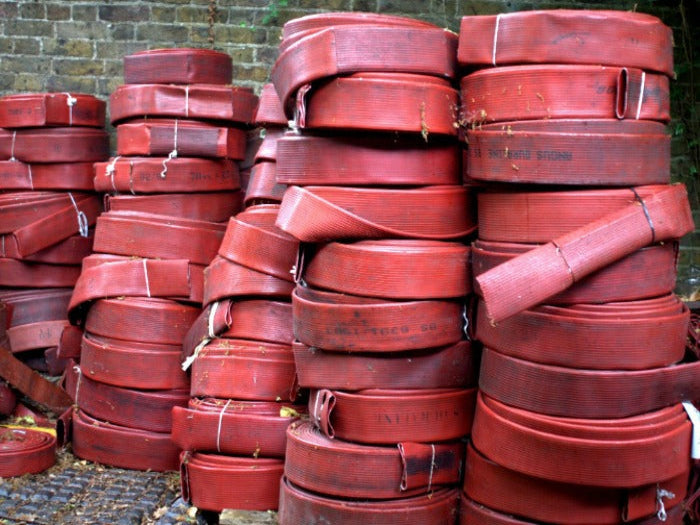We fell in love with London's decommissioned fire-hose back in 2005 through a chance encounter with the London Fire Brigade. We took this lifesaving material home determined to breathe new life into it and save it from its otherwise inevitable end in landfill.