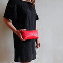 The Leather Toiletry pouch is a highly versatile piece and can be used in many ways: a make up bag, large pencil case, clutch bag, small dopp kit or of course as a pouch for your toiletries. The pouch combines hand-woven rescued leather and decommissioned fire hose and is lined with reclaimed parachute silk. The intricate leather is handwoven and stitched creating a stunning leather toiletry case that is ideal for carrying all of your vital cosmetics, toiletries or makeup. Perfect for an elegant weekend away.
