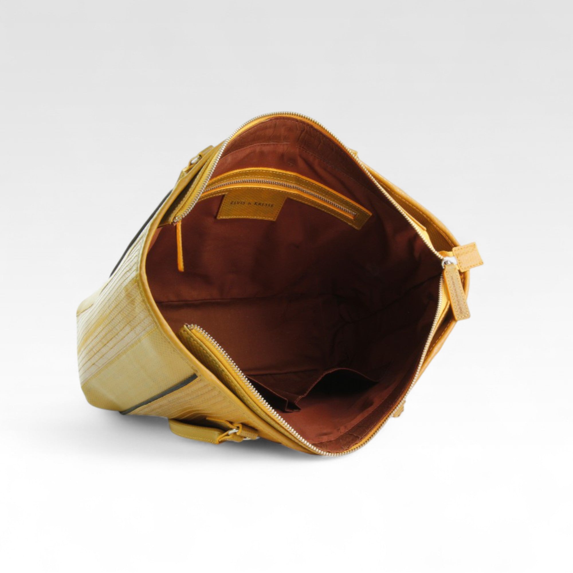 The Elvis & Kresse Tote Bag is made from genuine decommissioned fire-hose and lined with reclaimed cotton. Previously deployed in active duty for up to 25 years, fighting fires around the UK, the hose turns a classic shape into an eco original. A perfect day bag due to its size and robustness, the tote will keep you dry through a spot of rain and keep its contents dry even in a rainstorm. You don’t need to worry about setting it down on the ground, it will wipe clean with just a cloth and some furniture polish. This over-the-shoulder bag is big enough for a 13" laptop and has 3 internal pockets. Practical, individual, beautiful, timeless.