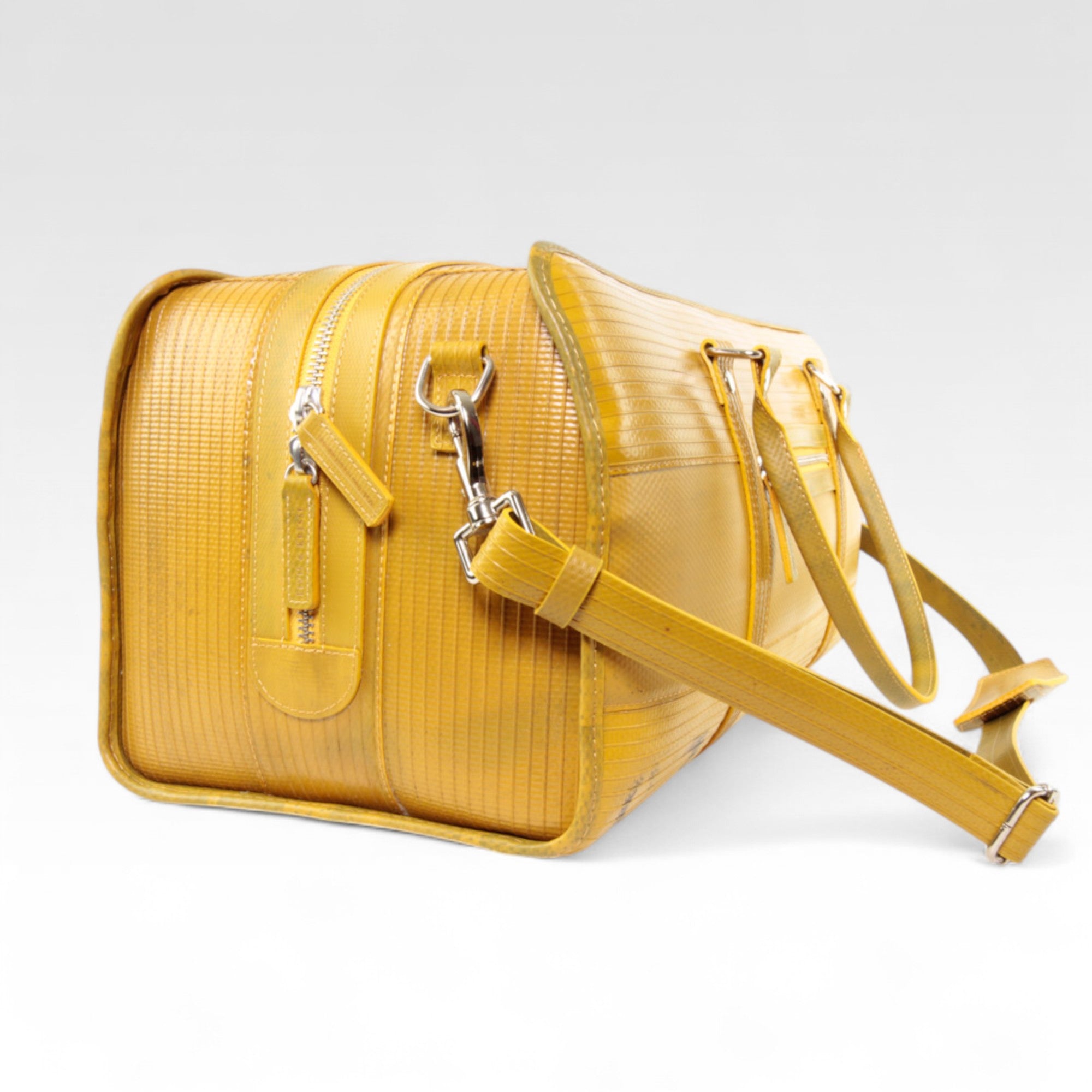 Previously deployed in active duty for up to 25 years, fighting fires around the UK, the hard-wearing hose is perfectly suited for your travels. The extra-long double zip makes access into the bag a cinch and the generous sizing makes the sustainable travel bag the perfect hand-luggage for your travels. The ethical travel bag has zipped external and internal pockets and 2 further internal poacher-style pockets.