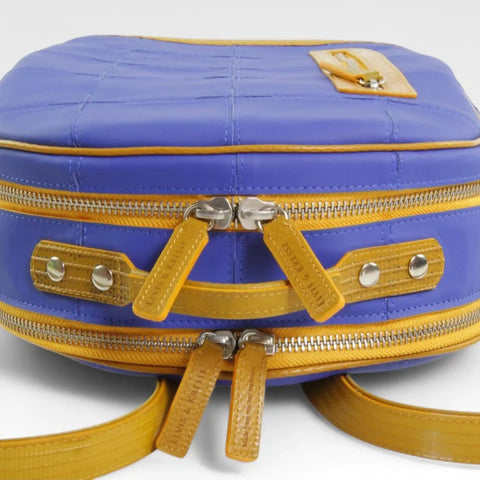The Voyager Backpack has two adjustable straps made from genuine decommissioned fire-hose, a body made from rescued Burberry leather and a reclaimed lining. It has 2 zipped compartments, a quick access external zip pocket, and 3 internal pockets - 2 poacher-style open pockets and 1 with a zip for your valuables. The leather backpack will comfortably carry a 15" laptop in it's own easy access compartment, iPad, book, travel wallet, a change of clothes and your everyday essentials. It has a grab handle at the top so you can carry this at your side. Our signature fire-hose completes the leather backpack with a durable water resistant and wipe-clean base.